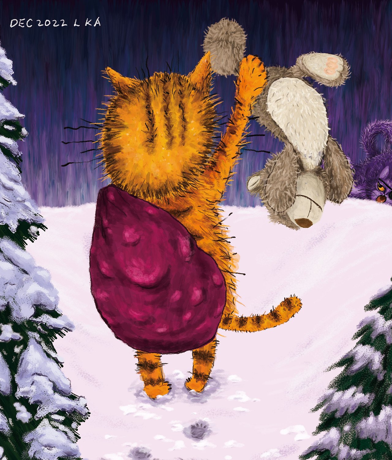 꼼! 저길 보라고. 산타마을의 산타냥이들이