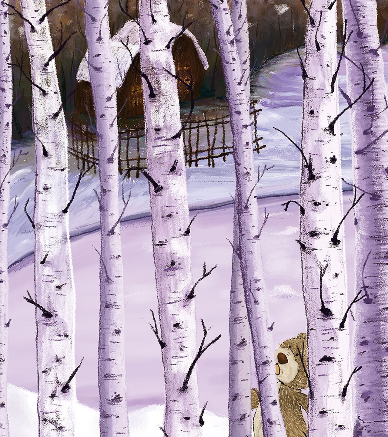 차가운 보랏빛을 뿜어내는 자작나무 빼곡한 숲.