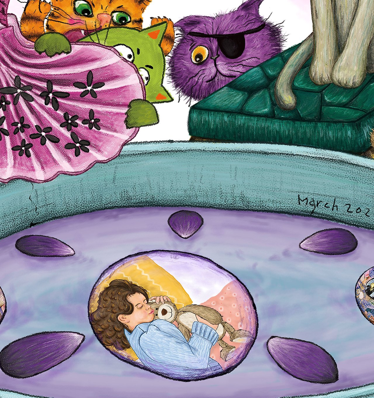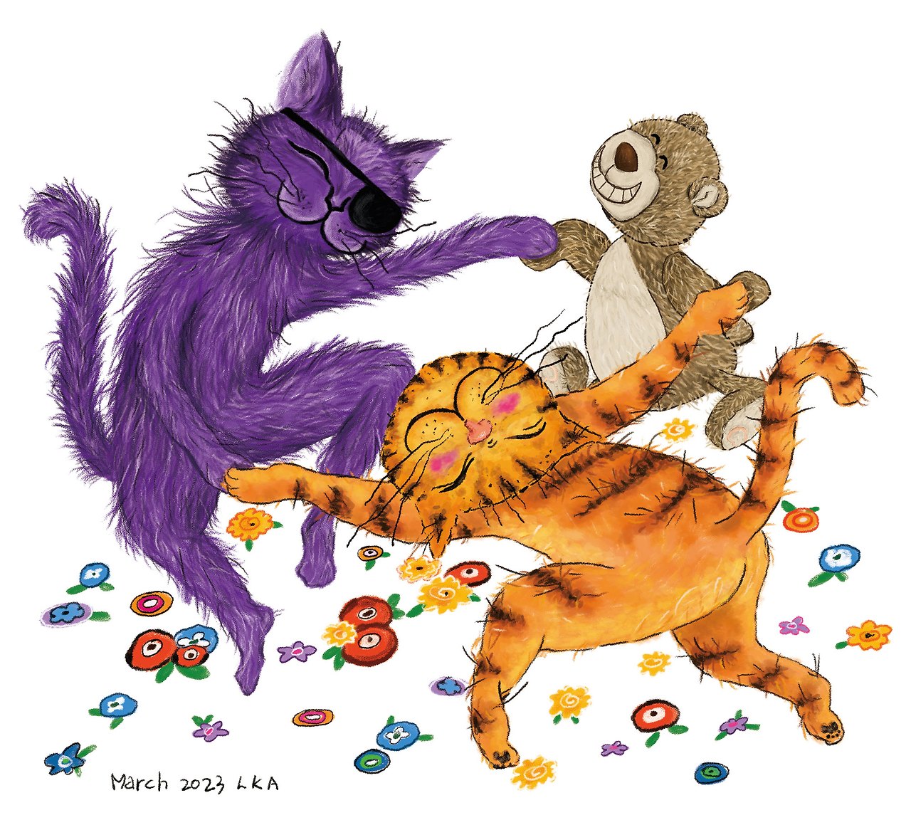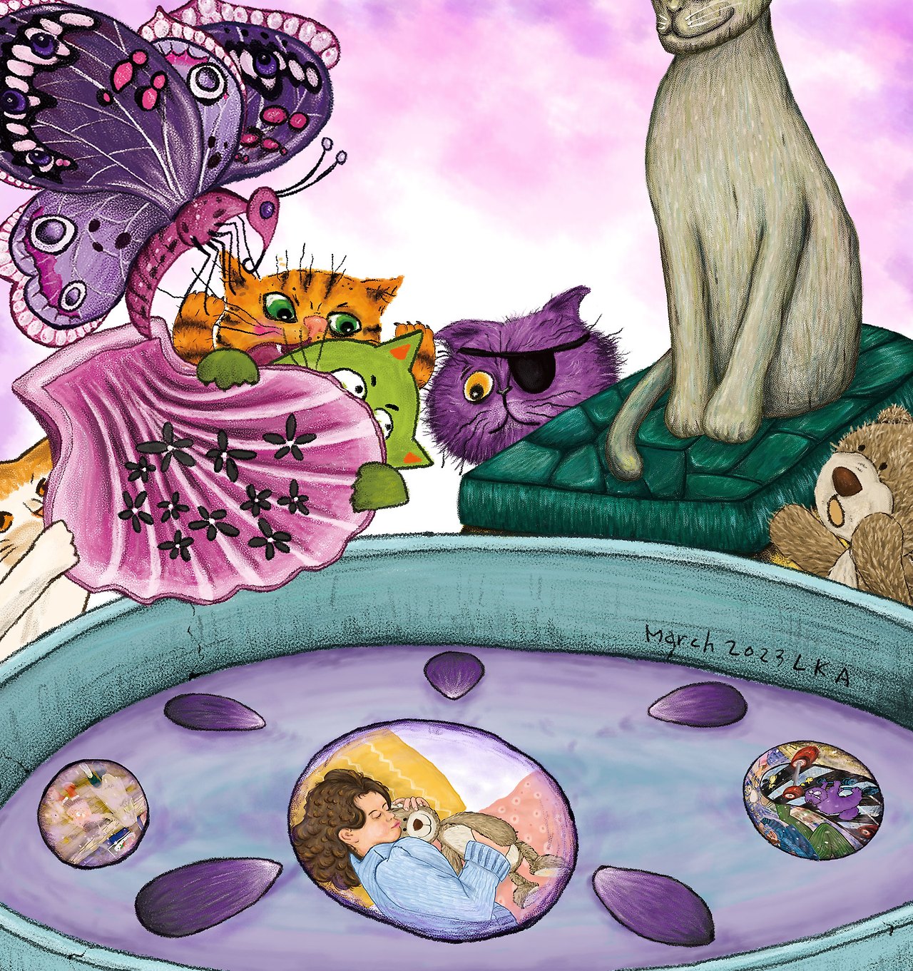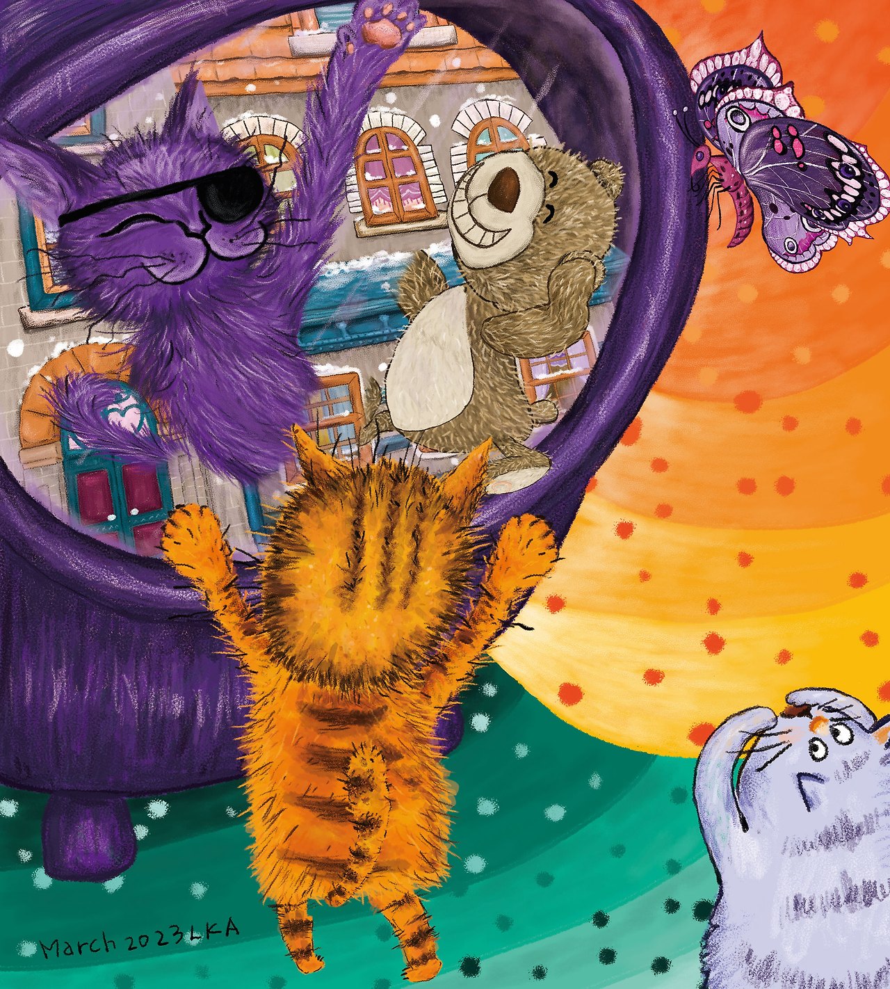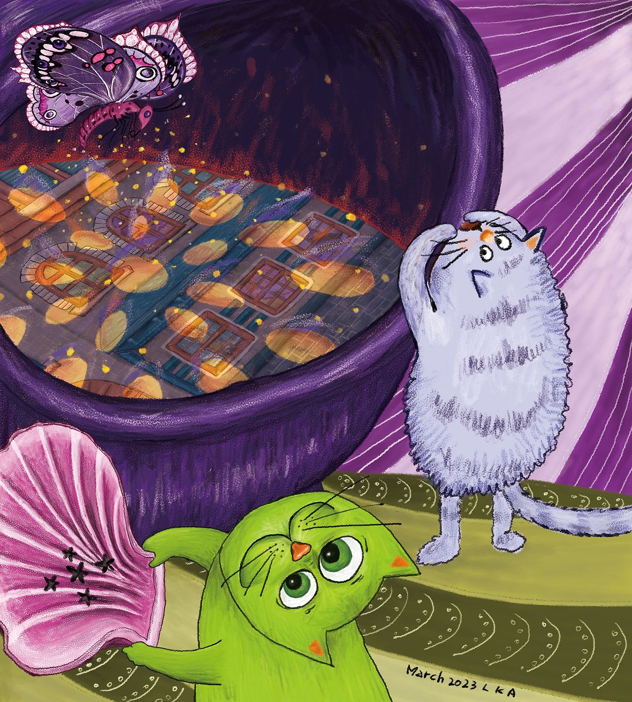 그리고 그 기억이 어떠하든 그다지 개의치 않을 거 같다고 보라색 고양이 대장이 말한다.