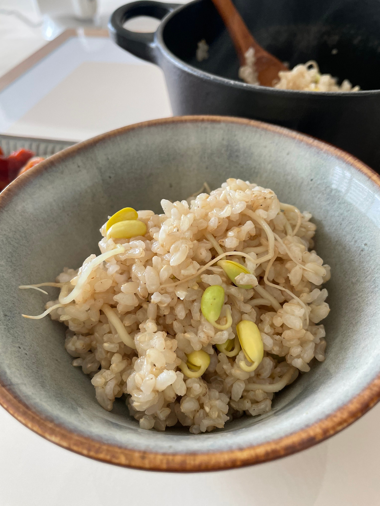 내가 키운 콩나물로 내가 만들어서 더 맛있다. 꿀맛. 물 대신 육수를 써서 적당히 짭짤했고, 그래서 따로 간장을 넣지는 않았다. 현미 특유의 까끌함과 콩나물의 식감도 나름 궁합이 좋았고, 무엇보다 밥이 안 탔다!!!!! 탄내 대신 콩나물 향이 은은하게 퍼지는 내 솥밥, 아주 칭찬해.