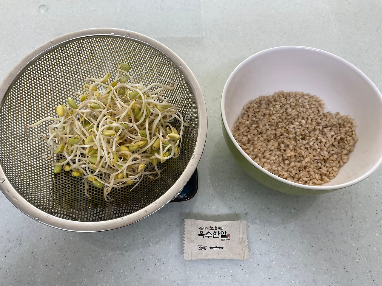 콩나물, 쌀(나는 현미를 썼기에 전날 밤에 불려놨다), 물. 끝.