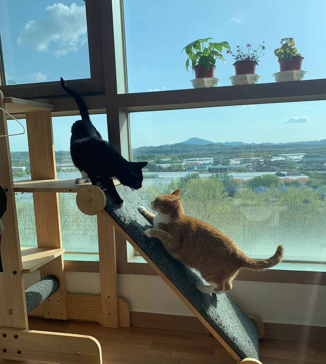 샤샤는 우리집 서열 제1위로 등극했다. 온갖 사랑을 독차지한 샤샤는 이에 아랑곳하지 않은 채 그다지 감동하지 않았다. '내가 젤 잘 나가'... 이런 기조였다. 원래 태생이 이쁜 것들의 자신감이랄까 샤샤의 고매함은 때와 장소에 상관없이 시종일관 수미쌍관이었다. 나는 샤샤의 사랑스러움과는 별개로 밥과 물을 바꿔주고 화장실 모래를 청소하고, 날리는 털 때문에 공기청정기 필터가 막히거나 옷에 붙은 고양이 털을 제거하느라 시간을 써야 했다. 그런데 또 한 마리의 고양이라니...