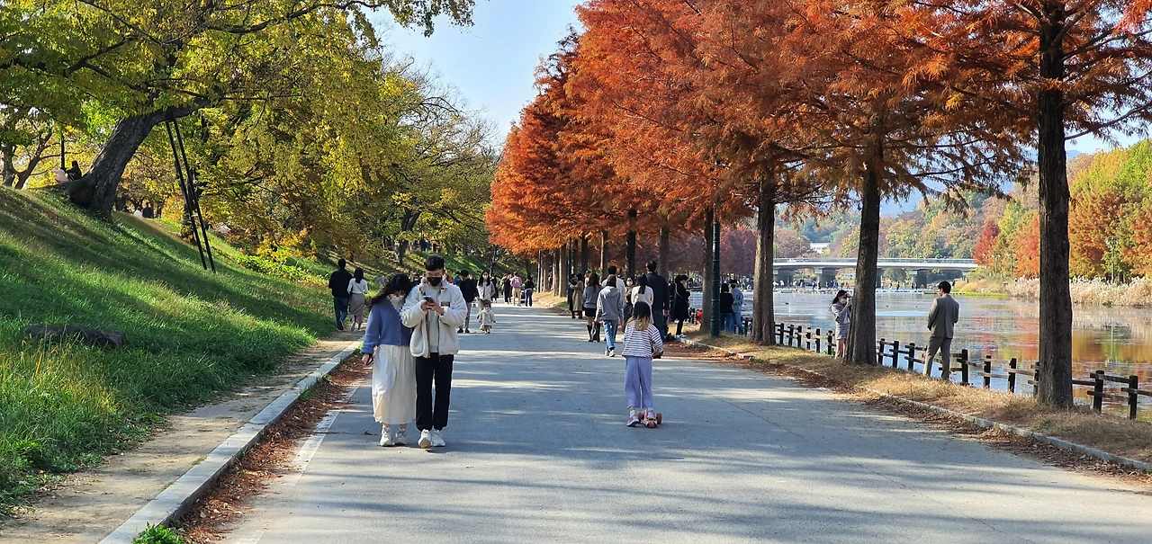 한때는 아내 손을 잡고 이 길을 걸었었다, 아침 일찍 평상에 돗자리를 깔고 자리를 맞추고 피자와 김밥을 사서 앉아서 하루 종일 바람 쐬고 왔던 적도 있는데 아이랑 같이 평상에 누워서 큰 나무 가지들 사이로 하늘을 보고 같이 뒹굴고, 놀이터에서 뛰어놀고 했던 기억들