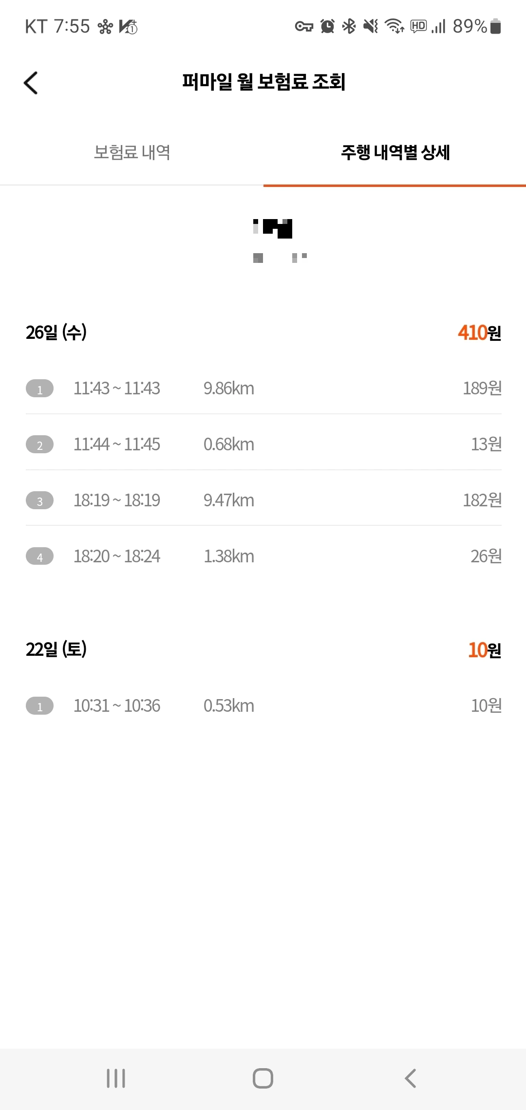 주행시간 1분도 안되는 시간동안 9KM를 이동햇는데 시스템에서 거르지 못하고 요금이 징수될뿐만아니라, 주행거리가 21.9km밖에 되지 않는데 주행거리 보험료가 이상하다