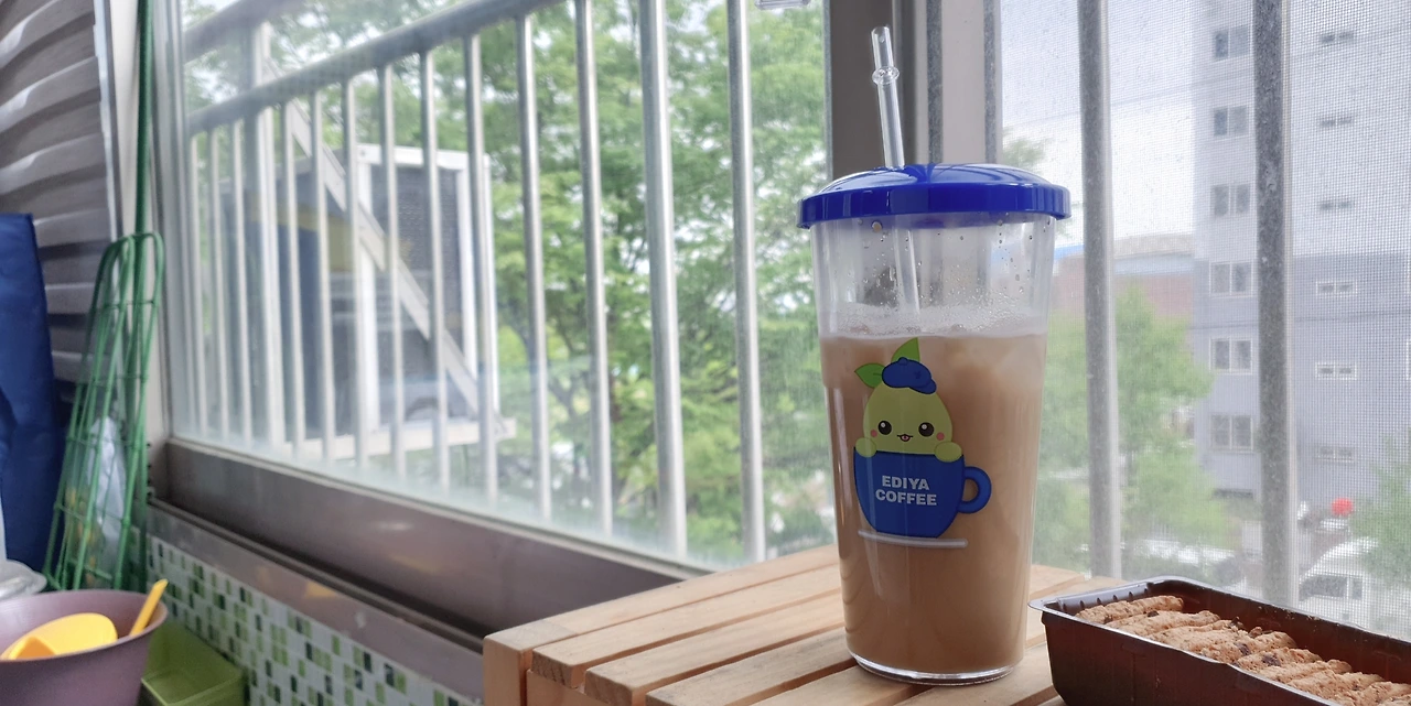 아이랑 베란다에 앉아서 아이스티와 아이스까페라떼 한잔을 마신다 쿠키도 먹고 가만히 있던 공주가 묻는다