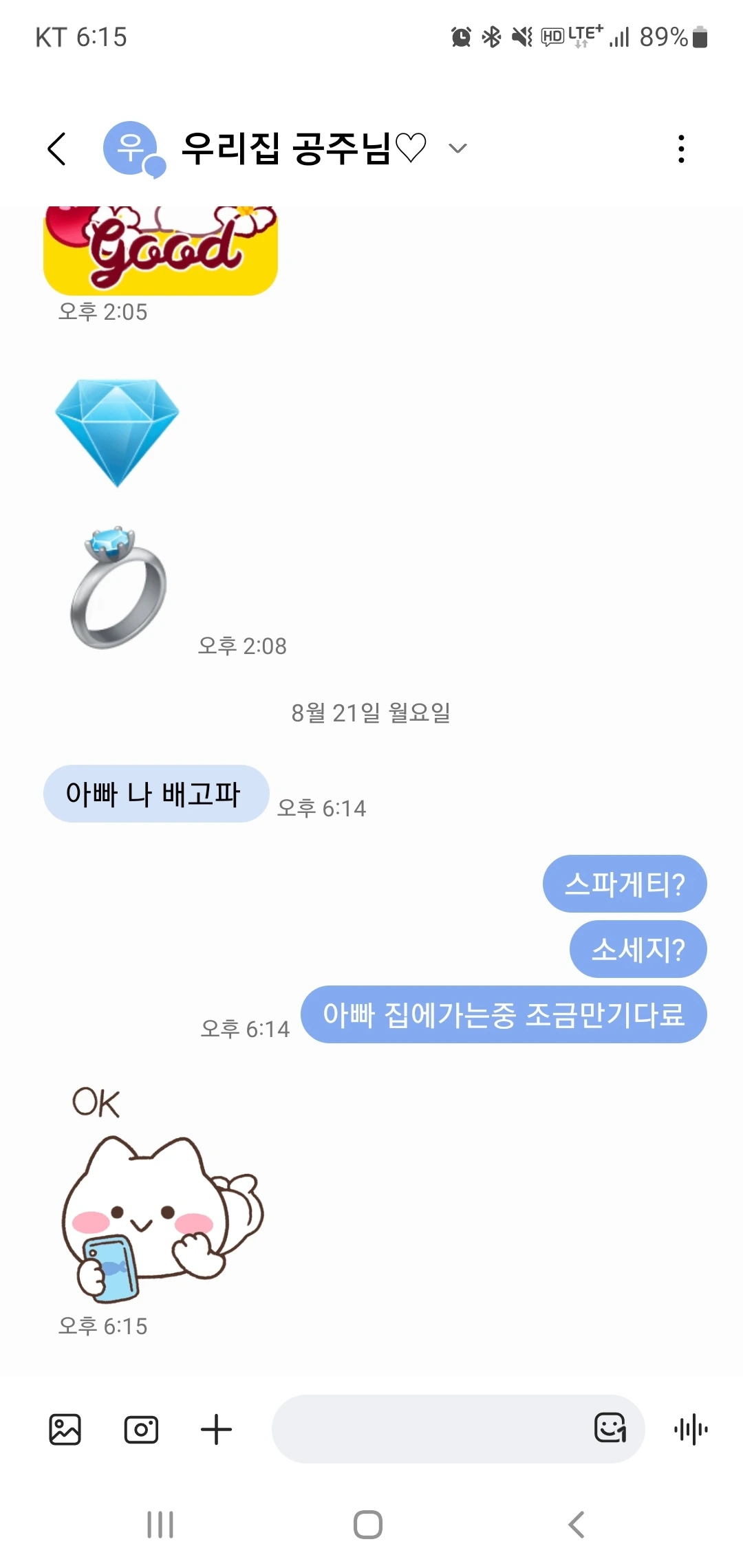 공주님께서 문자를 갑자기 엄청 잘 쓰신다, 아무리 자동 완성 기능이 좋다고 하지만 그래도 오타를 기억해서 완성되어 보여줄 터인데, 요 며칠 저녁에 내 시간을 좀 줄이고 맞춤법을 알려줘서인지(실상 아빠도 맞춤법을 다 틀리긴 하지만)는 몰라도 일취월장한 문자 실력에 깜짝 놀라고는 한다