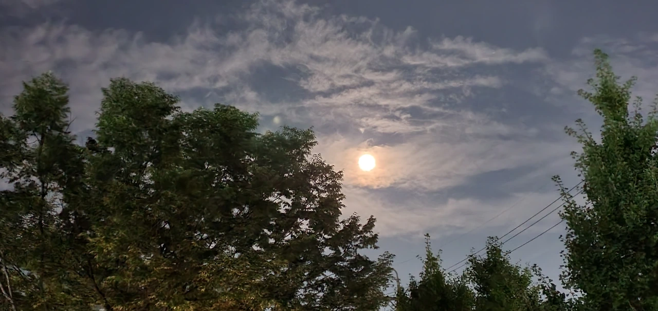 아이 옷을 대충 걸쳐 입히고 나도 대충 입고 집 앞 놀이터로 간다 언덕 위에 있는 아파트이다 보니 별로 가리는 것 없이 하늘이 뻥 뚫려 보인다, 오전 중에 비가 와서 구름이 좀 껴있어서 볼 수 있을까 싶었는데 다행히 잘 보인다 하늘 높이 뜬 달을 보더니 공주가 입을 연다