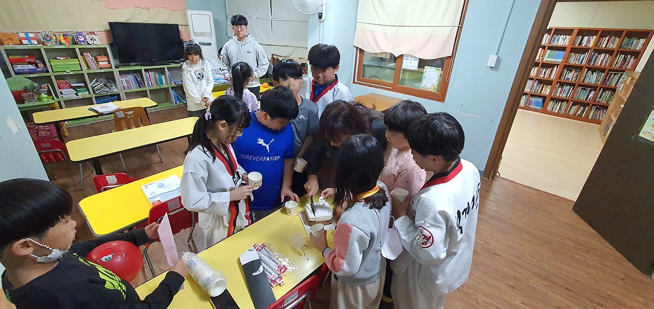 아이들과 함께 공부방으로 들어가 케이크를 깠다, 모 카페에서 요즘 인기 있는 만화 캐릭터 케이크였다 아이들이 와하고 소리를 지른다 선생님이 들어오셔서 이야기를 하신다