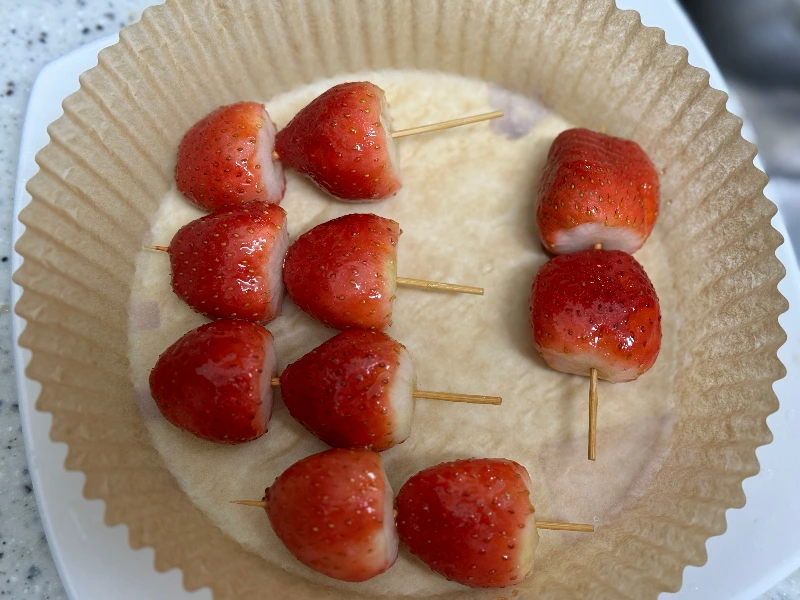 반짝반짝 광택이 나는 코팅이 입혀지고 아마도 좀 시간이 지나면 굳어서 탕후루가 되리라 의심치 않았건만...