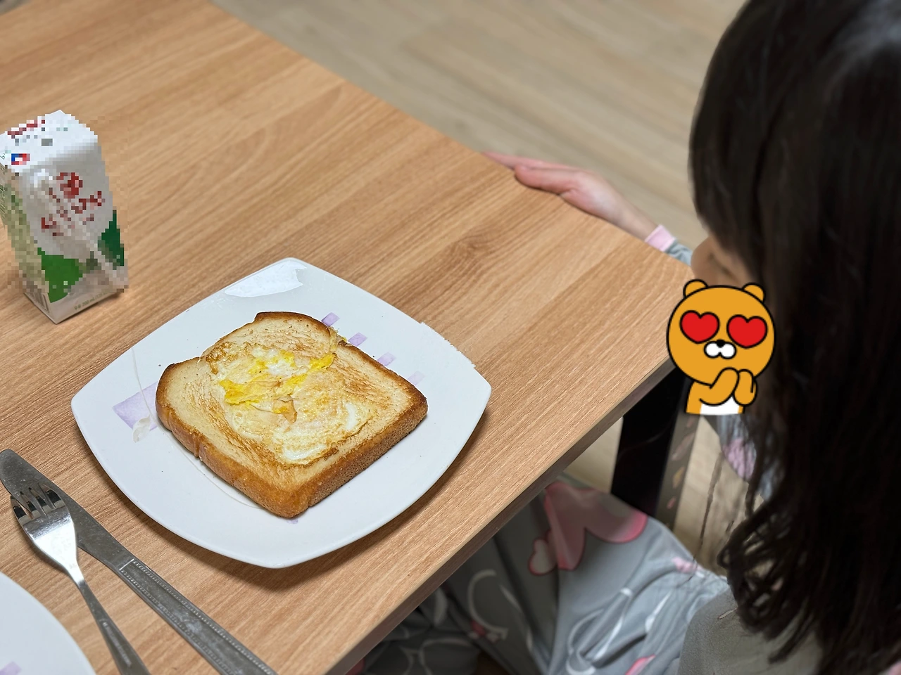 나이프를 들어 싹싹 썰어드리니 포크로 잘 집어 드신다 시간에 쫓겨 사는 것 같은데 이렇게 새로운 것을 해볼 때마다 한 박자씩 쉬어가는 기분이다 나도 토스트를 한 입 베어 물었다 빵의 바삭함과, 달걀의 촉촉함, 그리고 모차렐라 치즈의 짭쪼름함이 입안에 퍼진다, 모양은 좀 안 예쁘지만 그래도 이 정도면 만족스럽다
