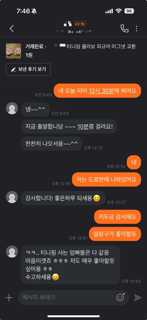 "그래도 마그넷은 이렇게 당근 교환하면 되니까.. 장난감 보단 덜 들겠어요."