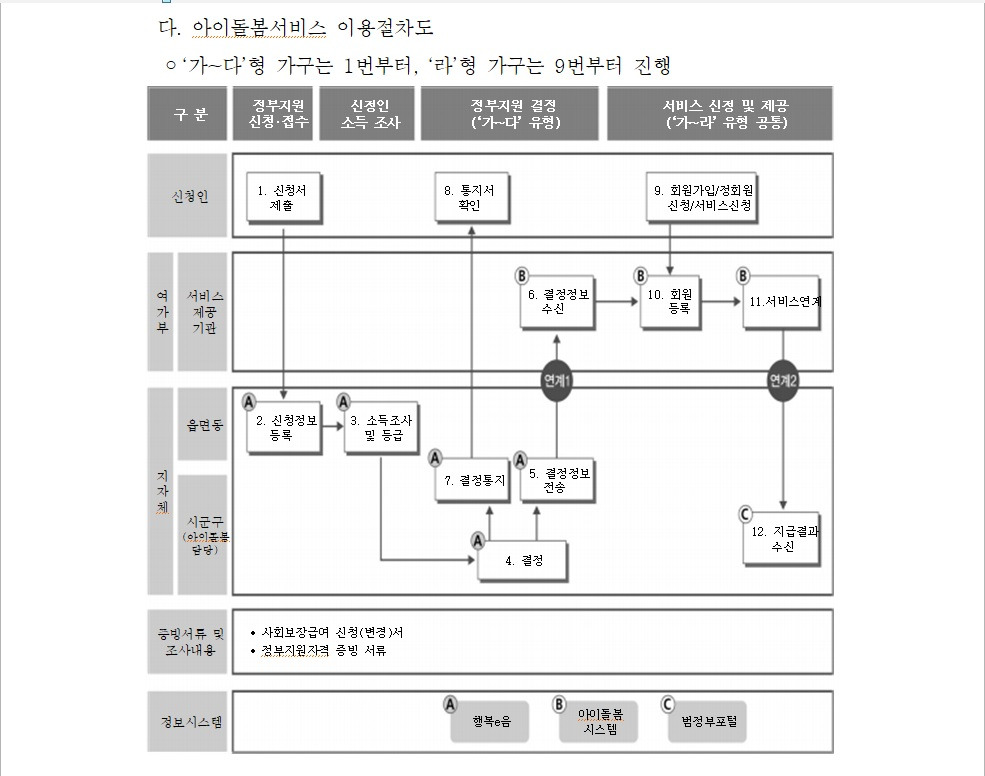 이 순서로 진행된다, 소득정보가 등록이 되면 내가 지원받을 수 있는 형태가 가, 나, 다 형인지 지정이 돼서 통보된다