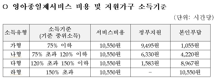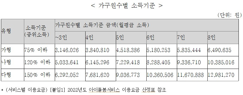 소득기준은 이 정도이다 대기업 다니지 않는 이상은 아마 대부분 이 조건을 충족시킬 것이다 라형의 경우는 150% 초과이고 전부 전액 부담이다