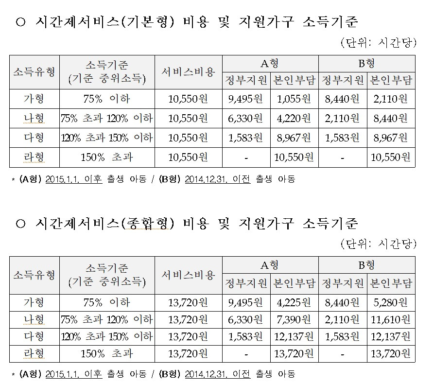 기본형과 종합형의 다른 점은 가사를 도와주느냐 마느냐의 차이이고 나머지는 똑같다, 3개월~12세 미만의 아동까지 적용되는 서비스이며 종일제 서비스와 시간제 서비스는 중복으로 처리가 되지 않으니 변경을 원하면 지역행복주민센터나 서비스 제공업체에 문의하여 변경하여야 한다