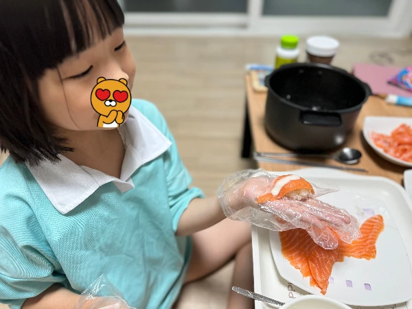 "아빠 우리 이거로 초밥 만들어 먹어요."