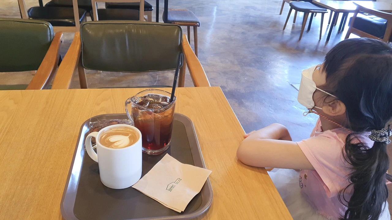 고작 커피 두 잔인데 점심 값만큼 나온다, 그래도 아이랑 보내는 시간이니 아깝지 않다, 아이와 편한 자리로 잡고 앉는다 아이는 미술관 같은 카페를 돌아다니며 구경을 한다 올 때마다 신기한 듯하다 책꽂이에서 책을 빼서 보기도 하고, 카페 앞에 있는 잔디밭에 가서 뛰어 놀기도 하며 시간을 보낸다 행복해하는 모습을 보면 기분 좋다가도, 혼자가 아니라 엄마나, 동생이라도 있었으면 더 좋았을 텐데 라는 생각도 든다 쿠키를 쪼개 입에 넣어준다 그러면 또 나가서 놀고 다시 들어오면 음료수 한 모금과 과자 한 조각을 입에 넣어준다 무난하고 조용한 하루가 얼마나 감사한지 모르겠다.