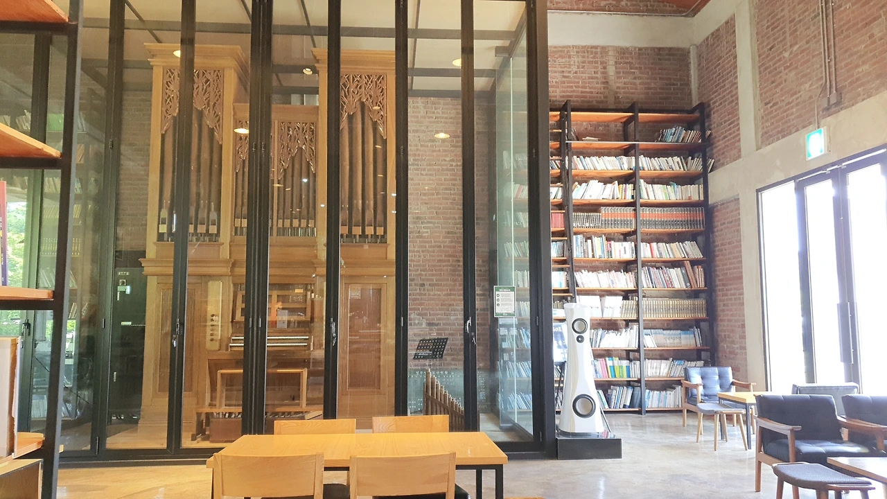 옆 카페로 들어간다, 주말에는 전자 오르골 연주를 들을 수 있는 시간이 있어서 항상 만석인데, 오늘은 웬일인지 사람이 별로 없다 매번 올 때마다 자리가 없어서 구경도 못하고 밖으로 나가야 했었는데 오늘은 아이와 천천히 있다가 나가기로 한다