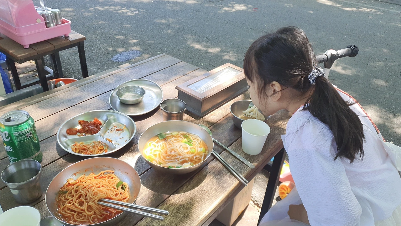 주차할 곳이 마땅치 않아 근처 공영주차장까지 가서 내리고 차에서 킥보드를 꺼내 준다 아이는 킥보드를 타고 앞서 가고 나는 뒤에서 천천히 따라간다, 국숫집은 이미 만석이었다 자리가 없어서 서성이다가 자전거를 타고 오신 아저씨 한분이 일어나시자마자 얼른 가서 앉았다 아르바이트하는 청년이 그릇들을 치워주자 주문을 했다