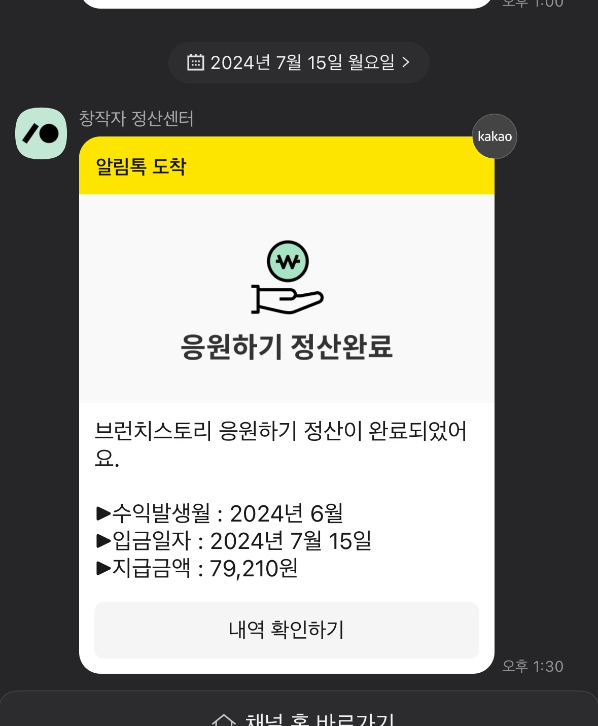6월 7월 8월 3분기 후원해 주신 분은 다*이님 한분이시고 총 정산 금액은 다음과 같습니다