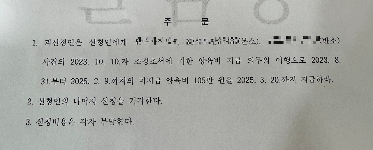 이행명령의 주문이 며칠 전 결정이 되어 날아왔습니다