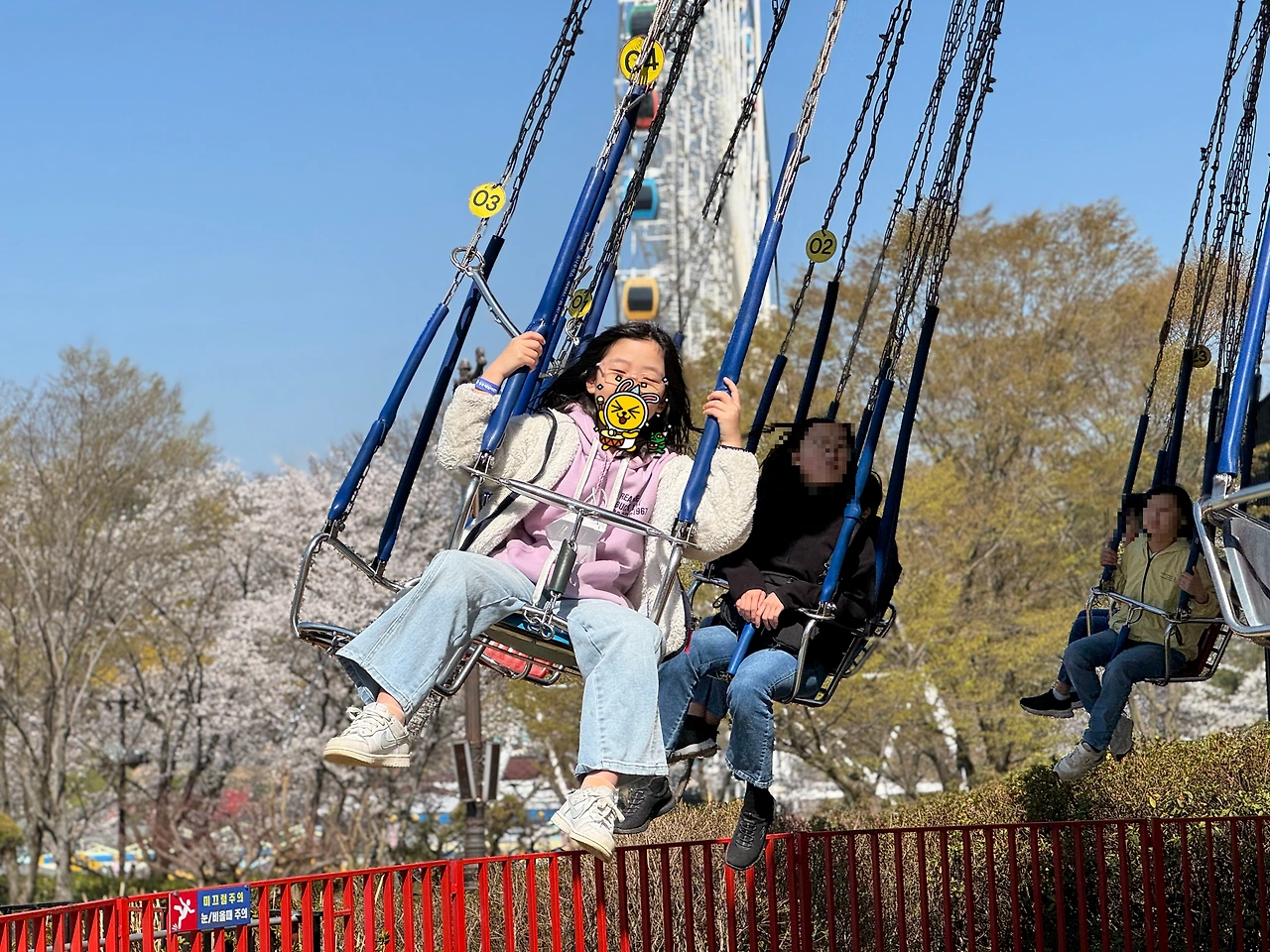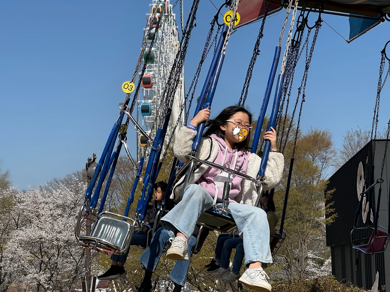 공주 생일이 4월 6일인데 원래는 5일에 놀이동산을 갈려고 했었다가 비가 오는 바람에 오늘 다녀오게 되었네요 토요일에 비가 좀 내려서 날씨가 많이 쌀쌀할 줄 알았는데 오늘은 날씨가 엄청 좋았어요 지역에서 벚꽃 명소 중에 한 곳이라 참 예쁘게 벚꽃이 피었더라고요 모처럼 외출이어서 그런지 아이도 참 좋아했습니다