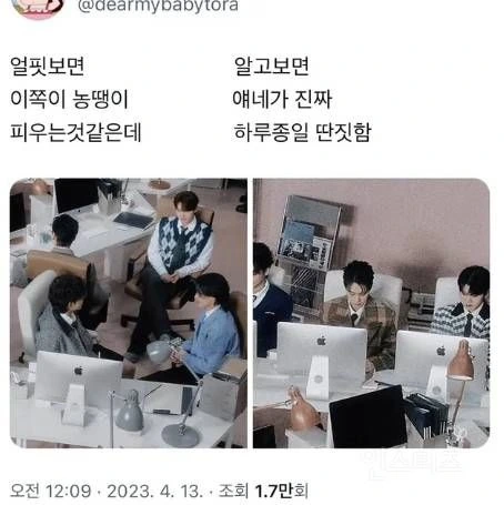 스몰 토크로 시작한 권태로운 대화들에 걸맞은 편안한 웃음은 기본입니다. 무난한 대화를 이어 나가는데, 조금 재미있는 부분이 있어요.