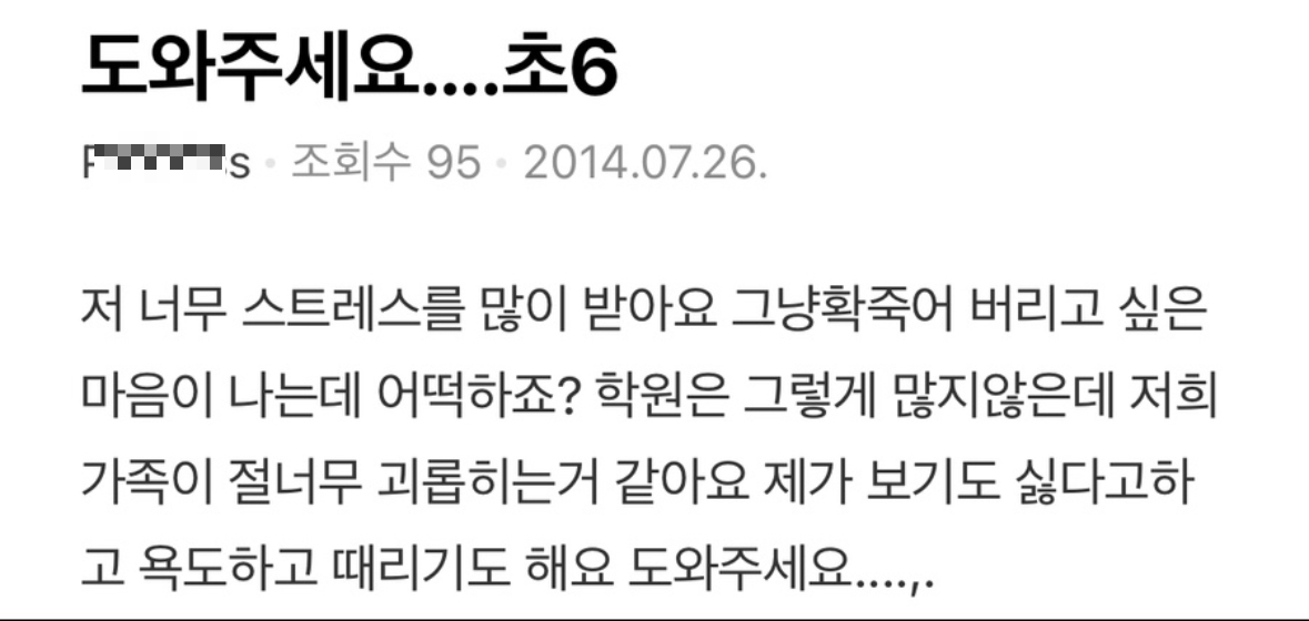 고등학교 2학년, 기숙사에서 택시를 타고 온 나는 결국 울며 뛰쳐나왔다.