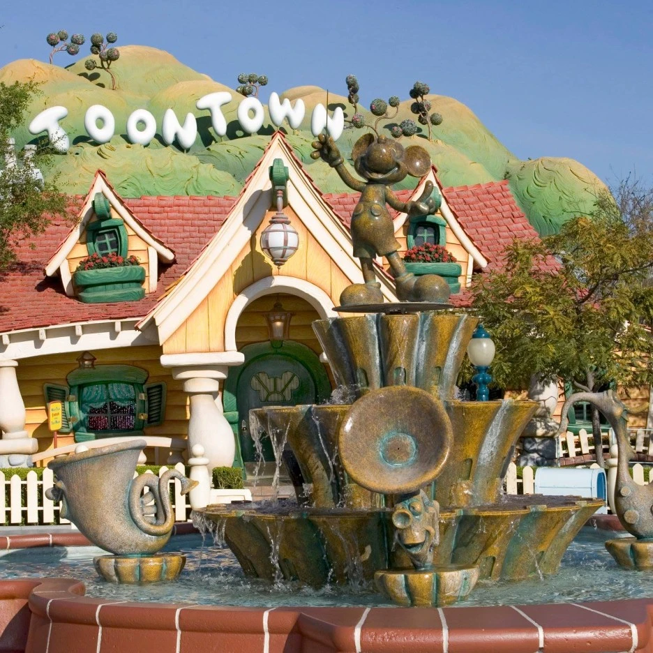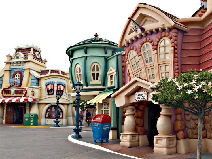 아이들의 시선을 고려한 낮은 높이의 파사드, 과도한 인위적 원근법, 마치 찌그러진 듯한 파사드 디자인들의 향연이다. 상대적으로 어린 아이 타겟의 테마랜드라고 해서 그저 그렇게 따분하게 디자인하지 않았다. 그리고 디즈니 클래식 캐릭터들의 모습들을 디즈니랜드에서 제일 많이 볼 수 있는 곳이다.