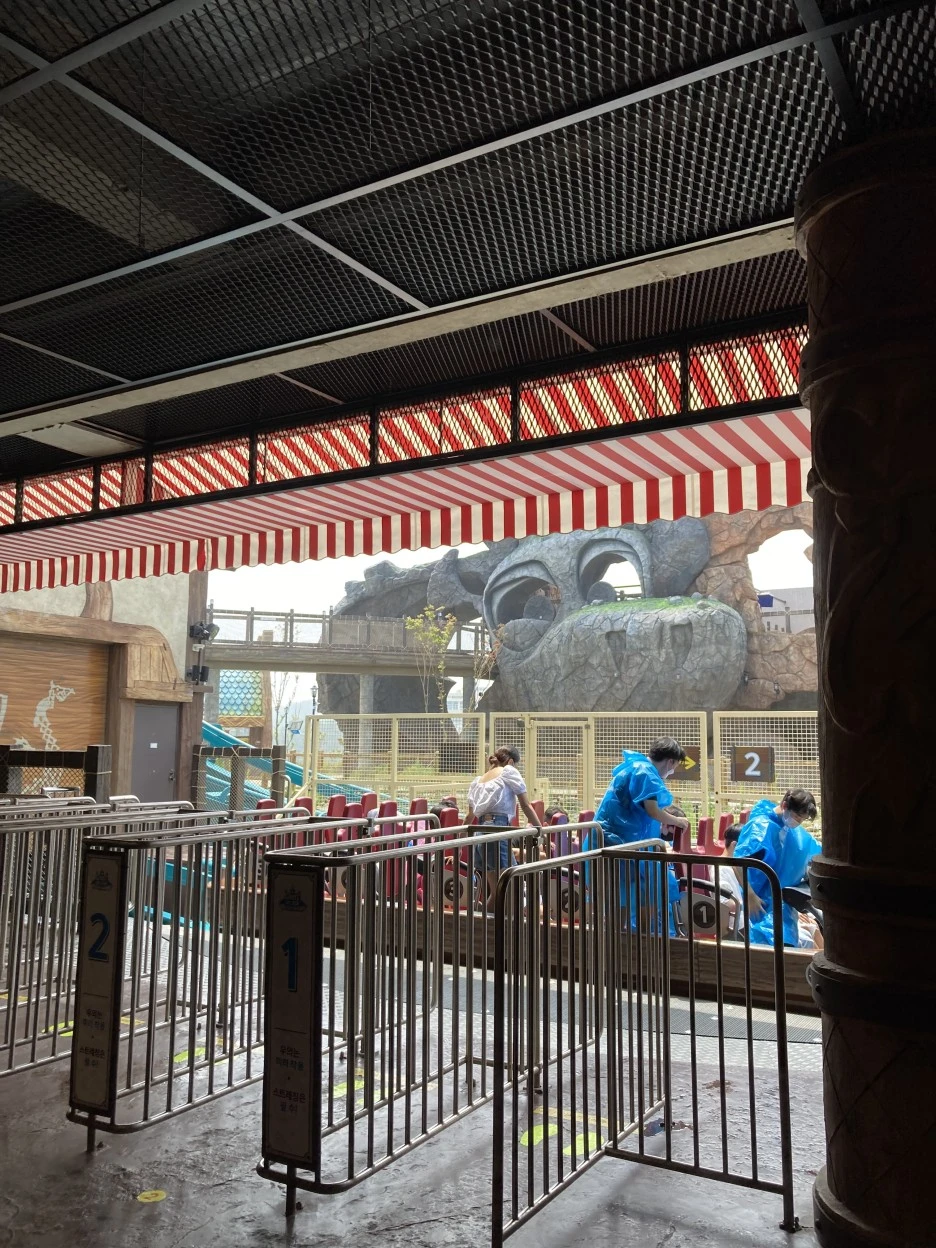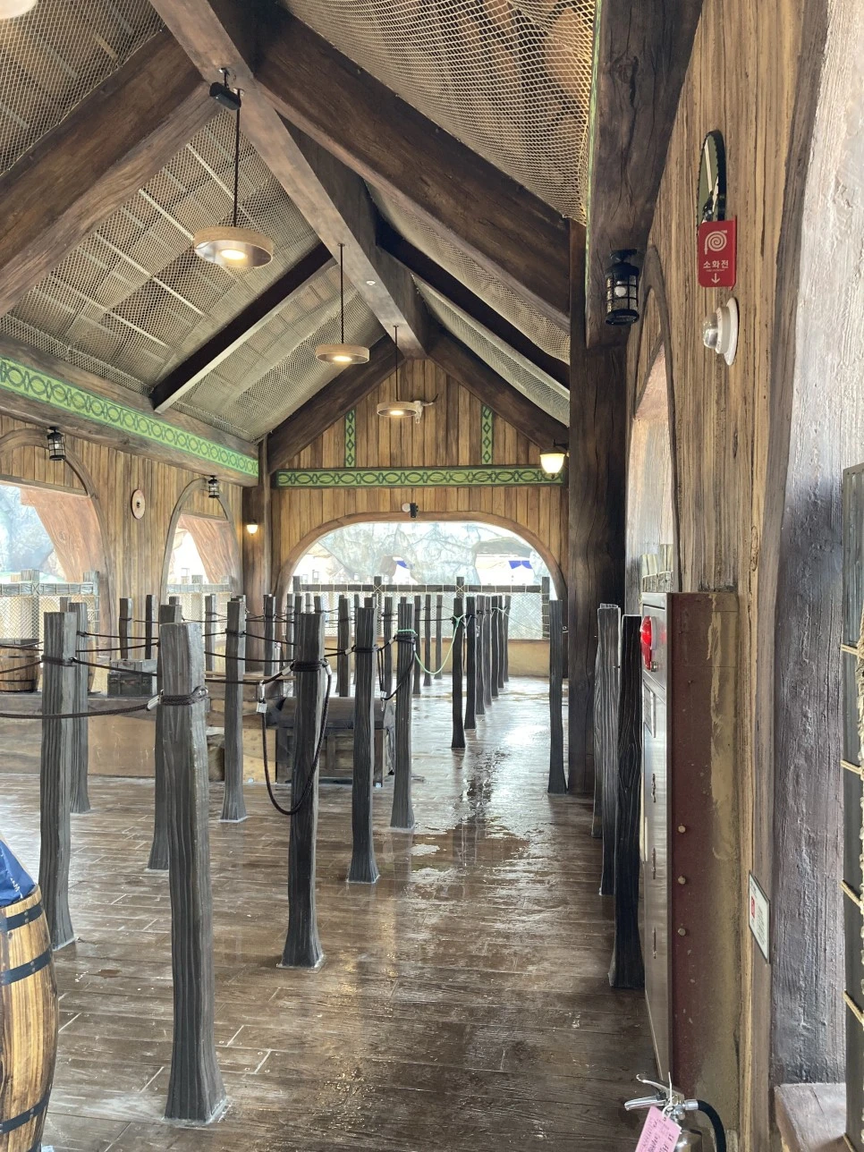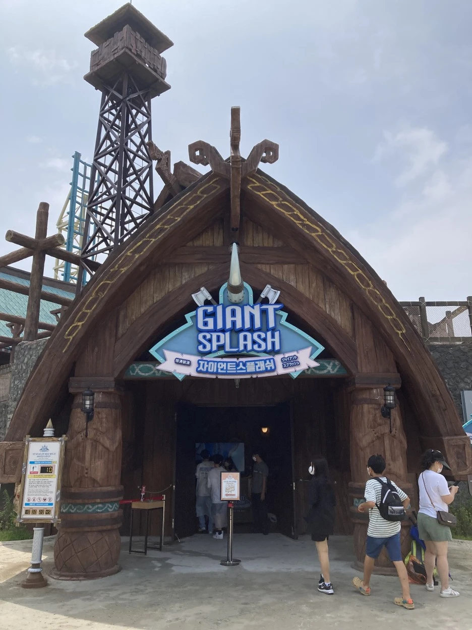 자이언트 스플래쉬도 역시나 규모가 긴 큐라인을 보유하고 있다. 정확하진 않아도 특히나 이 자이언트 스플래쉬의 큐라인이 우리나라 어트랙션 중에 가장 긴 규모의 큐라인이 아닌가 싶었다. 정말 정말 길었다. 그리고 큐라인에 설치된 조형물들의 디테일들도 휼륭했다. 초소 형태 타워와 깃발이 꽃아져 있는 기둥 등의 퀄리티들은 나름 휼륭하다고 본다.