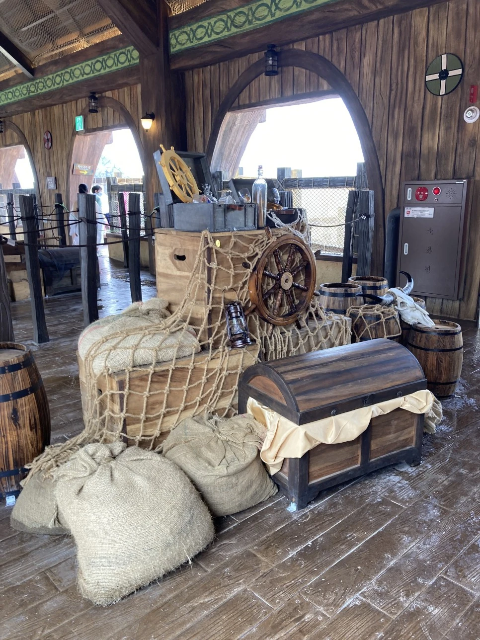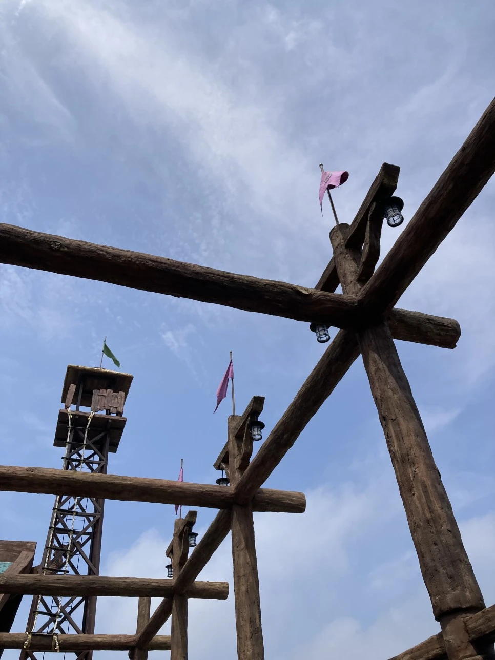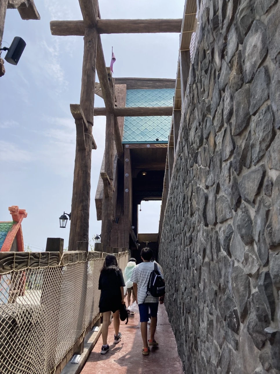 자이언트 스플래쉬도 역시나 규모가 긴 큐라인을 보유하고 있다. 정확하진 않아도 특히나 이 자이언트 스플래쉬의 큐라인이 우리나라 어트랙션 중에 가장 긴 규모의 큐라인이 아닌가 싶었다. 정말 정말 길었다. 그리고 큐라인에 설치된 조형물들의 디테일들도 휼륭했다. 초소 형태 타워와 깃발이 꽃아져 있는 기둥 등의 퀄리티들은 나름 휼륭하다고 본다.