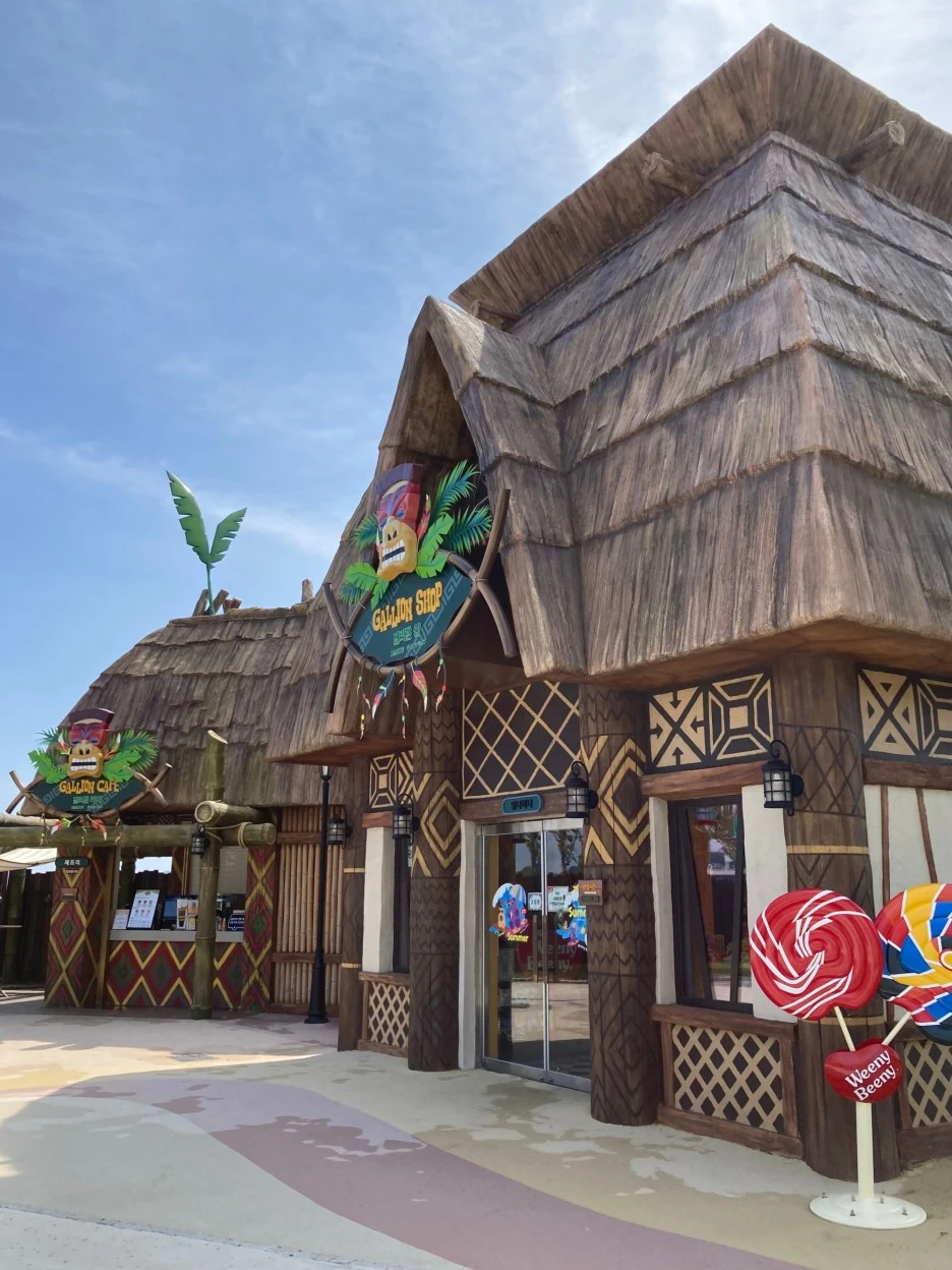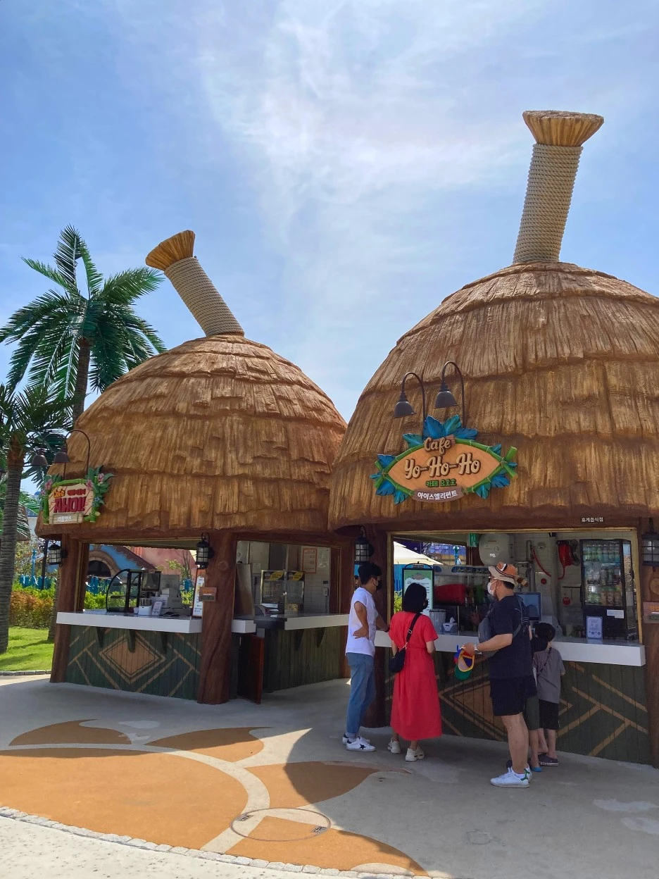 원더우즈 테마존의 하부에는 반대 편에서 자이언트 스플래쉬를 매우 가까이 조망할 수 있으며, 쉬면서 여러 간식들을 구매하여 먹을 수 있는 야외 공간이 따로 존재한다. 카페 아오이(Cafe Ahoi!), 카페 요호호(Cafe Yo-Ho-Ho), 갤리온 카페(Gallion Cafe), 갤리온 샵(Gallion Shop)이 모두 다 붙어 있으며 전부 간식과 스낵류를 판매하고 있다. 재미있는 점은 바이킹 컨셉이 디자인에 적용된 자이언트 스플래쉬와는 달리, 반대편인 이곳은 열대 지방인 폴리네시안 컨셉이 디자인에 적용되었다. 마치 옆동네 김해 롯데워터파크처럼 말이다.