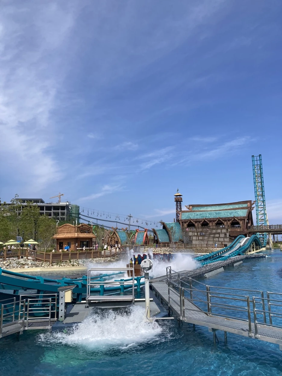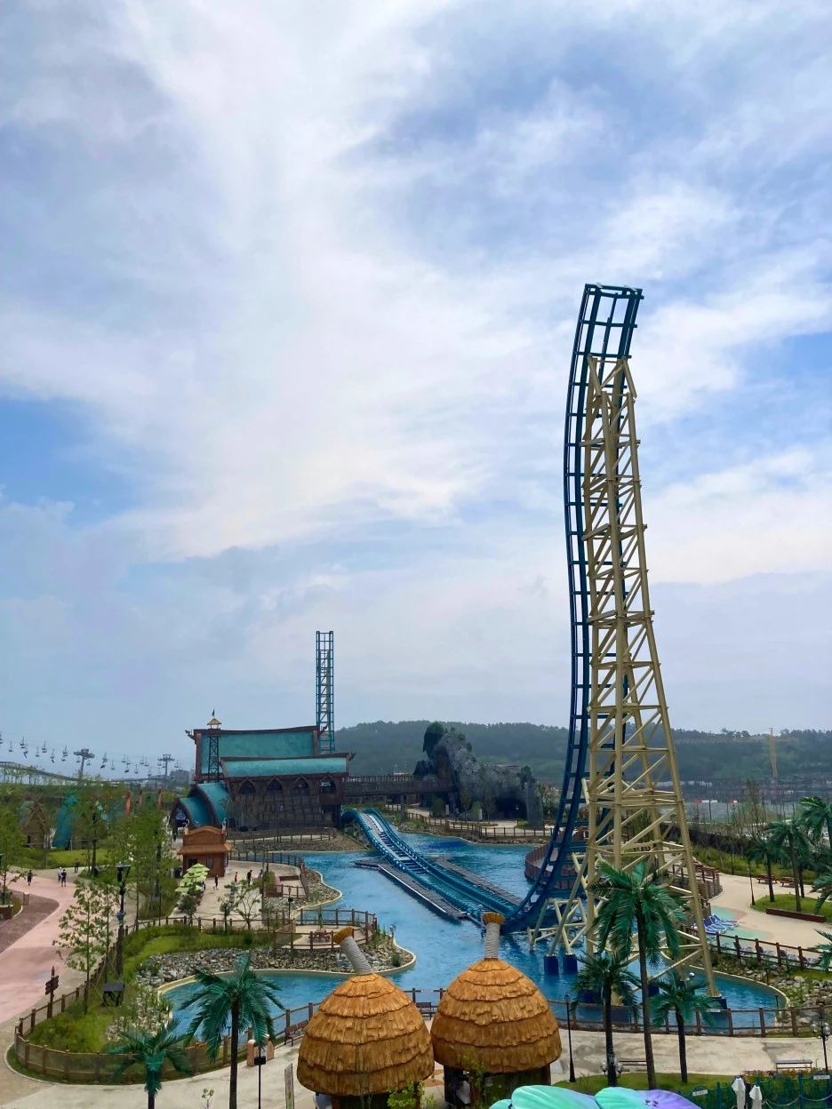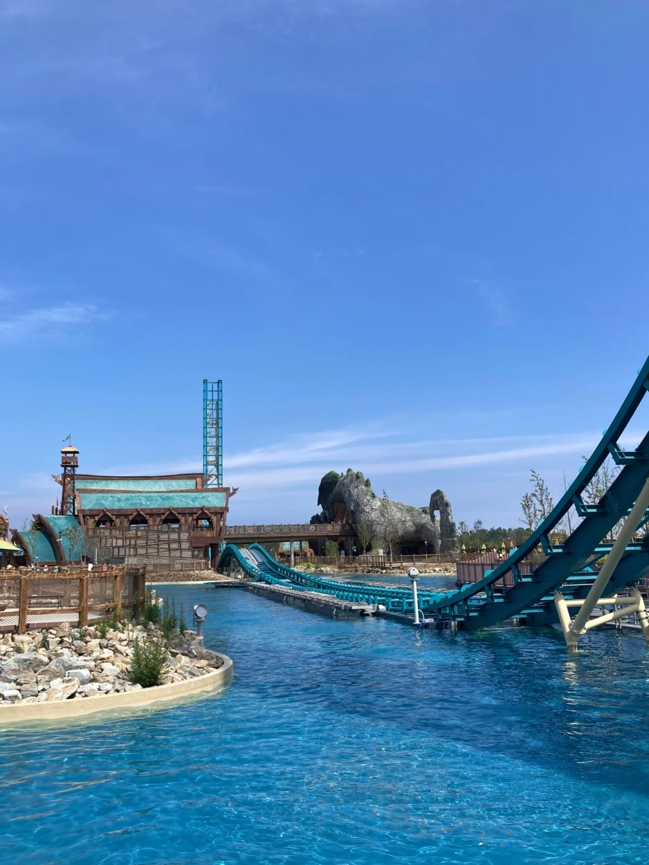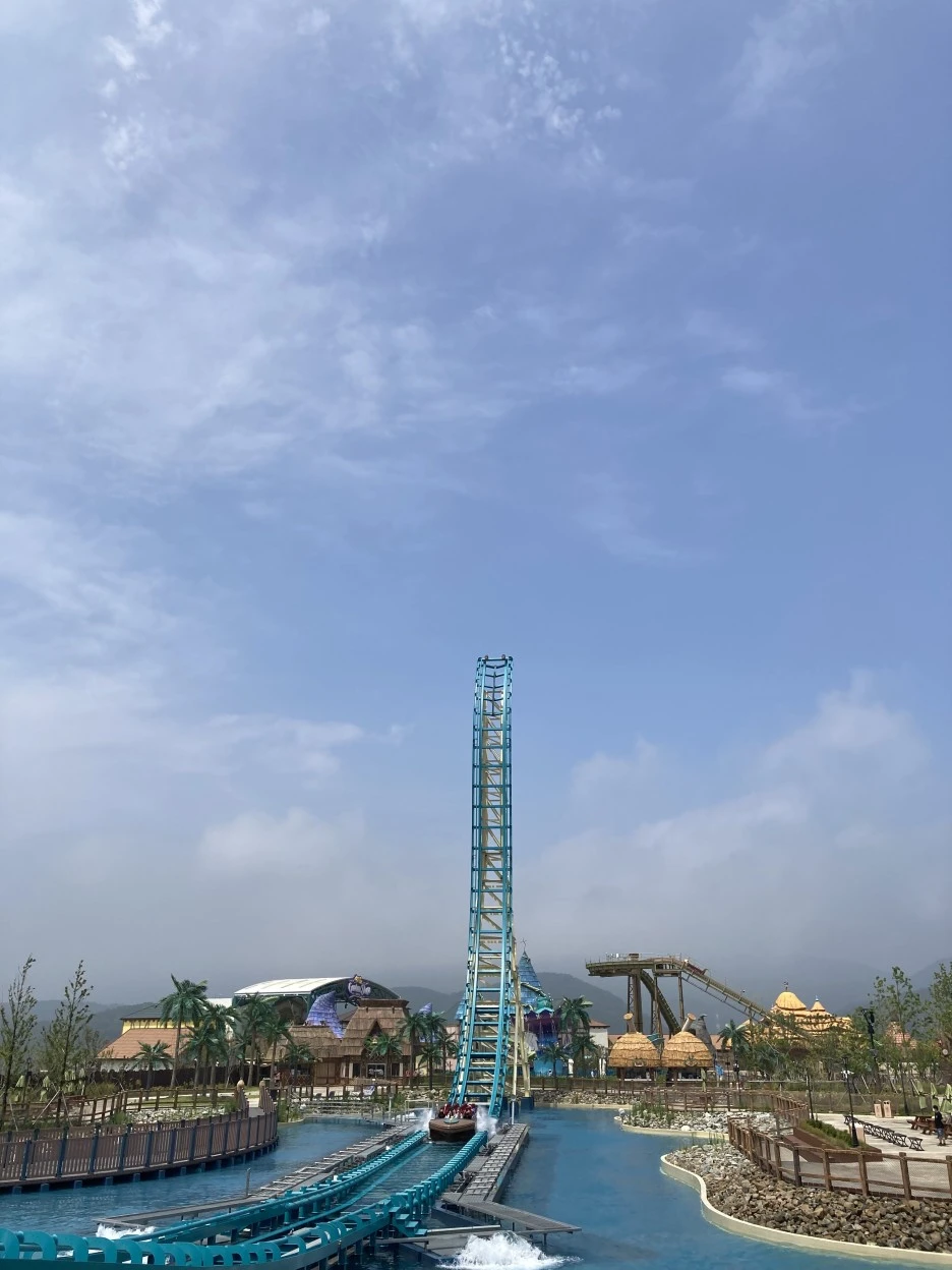 그렇게 출발하면 두 개의 타워를 왕복으로 2번 이동하며 마지막 하강 때 어마어마한 물벼락 세례를 맞게 된다. 물이 튀기는 범위가 넓어서 생각보다 보트에 들어오는 물의 양은 많지 않았다. 물론 내 개인적인 기준이라... 기종 특성상 러닝타임도 매우 짧은 편이고, 이것도 맥라이드 제품이다.
