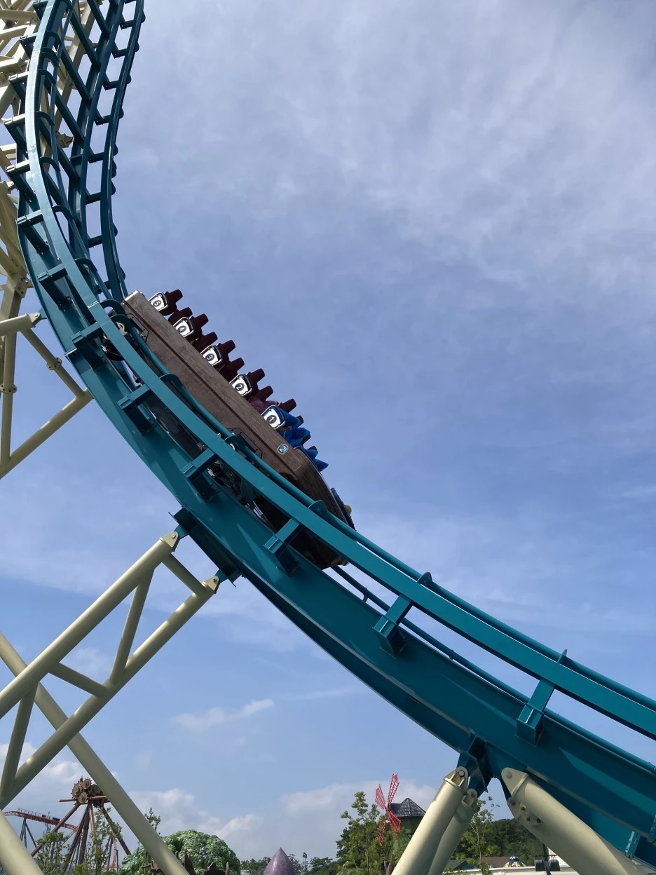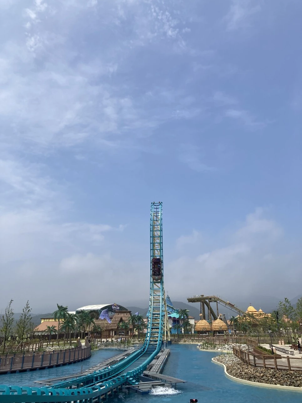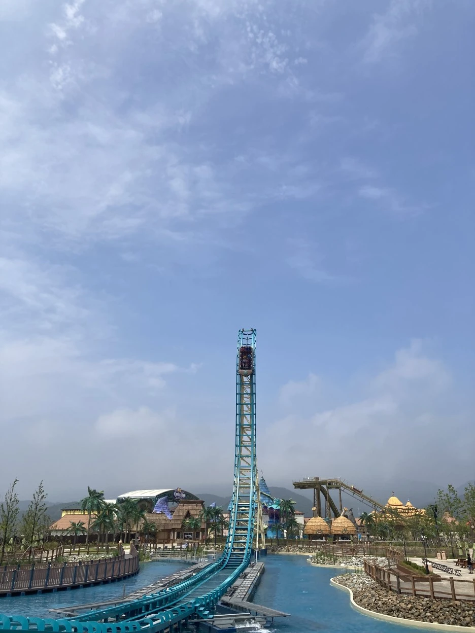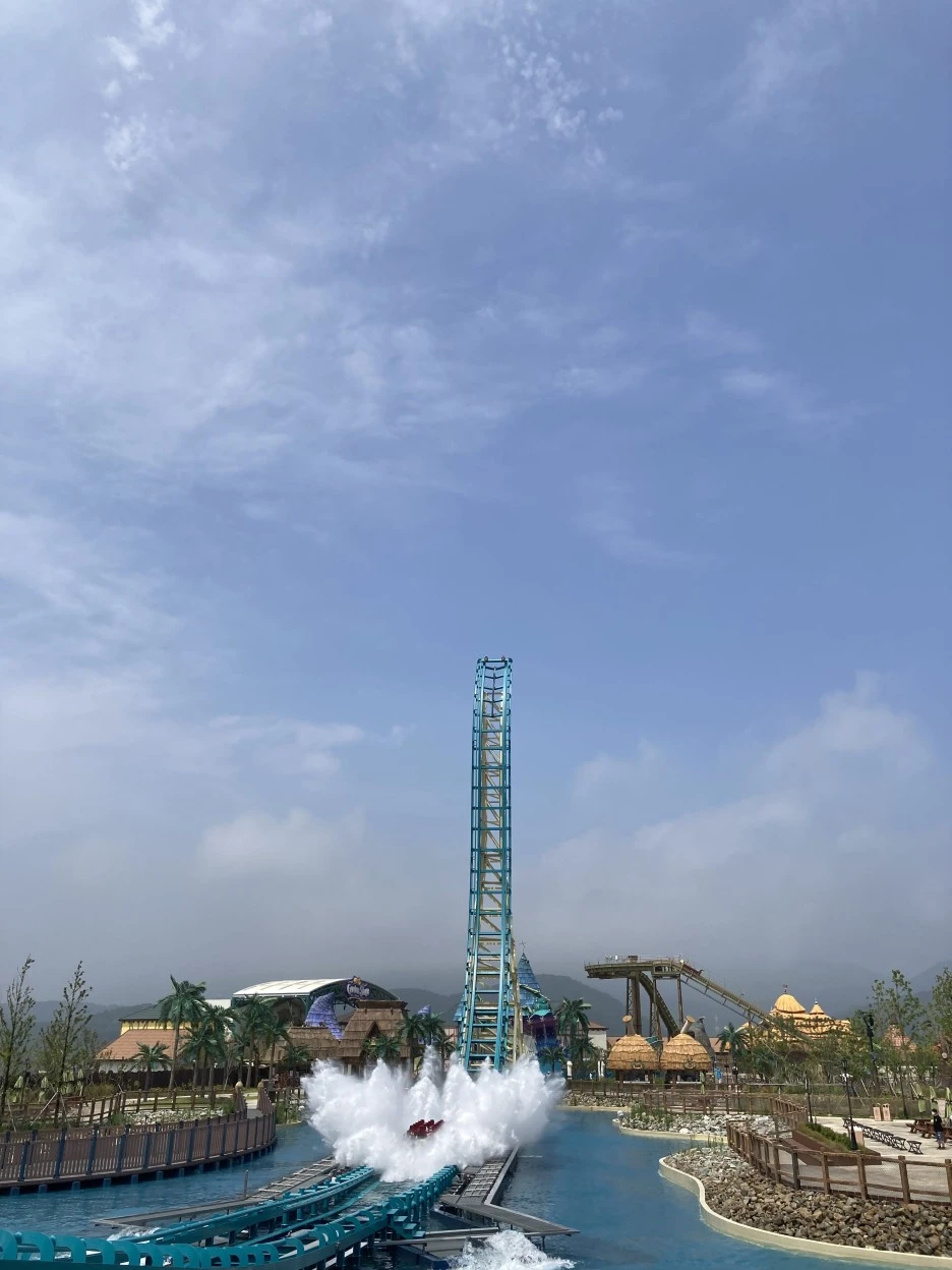 그렇게 출발하면 두 개의 타워를 왕복으로 2번 이동하며 마지막 하강 때 어마어마한 물벼락 세례를 맞게 된다. 물이 튀기는 범위가 넓어서 생각보다 보트에 들어오는 물의 양은 많지 않았다. 물론 내 개인적인 기준이라... 기종 특성상 러닝타임도 매우 짧은 편이고, 이것도 맥라이드 제품이다.