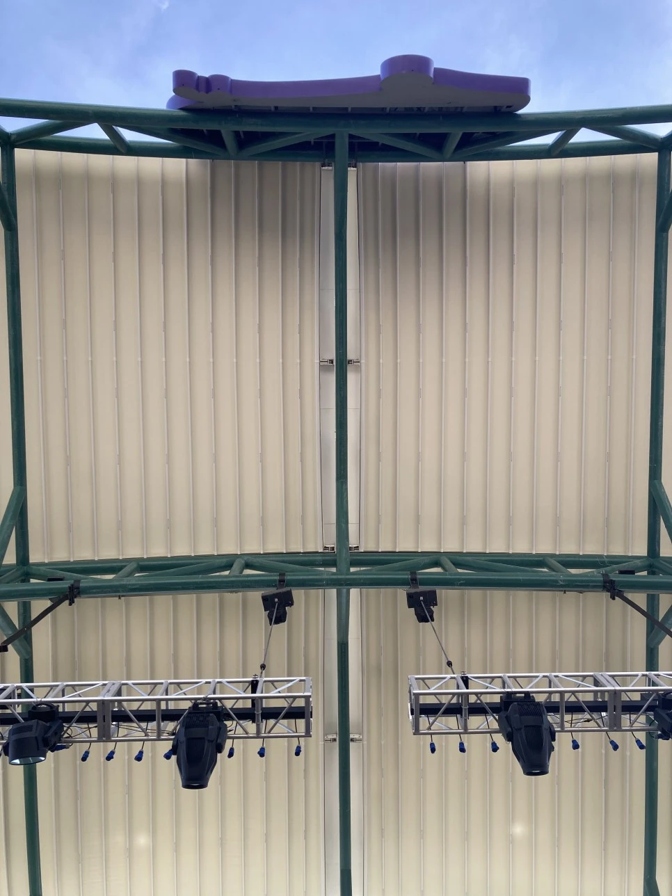 야외에 설치되었기 때문에 우천/폭우를 대비한 전천후가 설치되어 있으며 조명들도 상부에 설치되어 있다. 컨트롤실은 서울 롯데월드의 가든스테이지와는 다르게 한 곳에만 설치되었다.