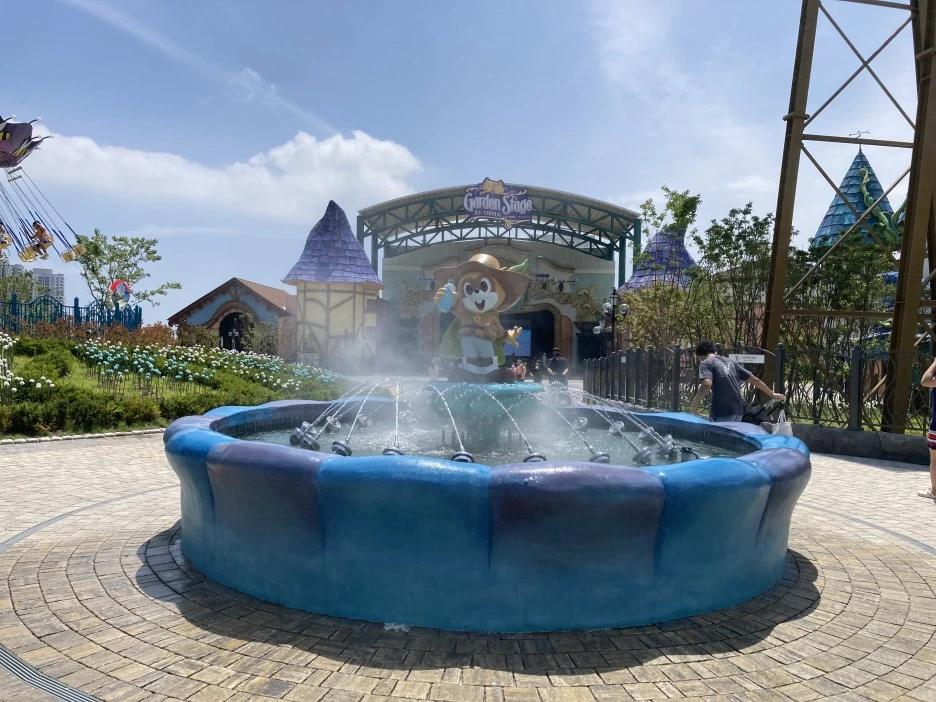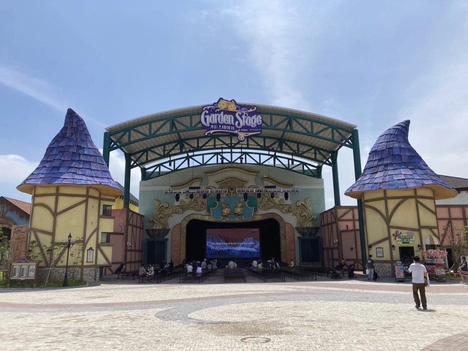 그렇게 용기를 주는 샘물의 진원지인 회전그네를 지나 테마존 안으로 더 들어오면 롯데월드 어드벤처의 부산의 메인 엔터테인먼트 시설인 가든 스테이지(Garden Stage)가 그 모습을 드러낸다.