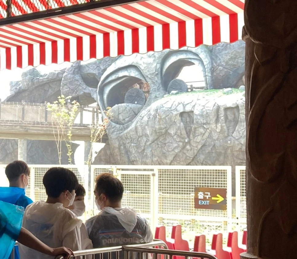 자이언트 스플래쉬 뒷 편에는 이렇게 거대한 용 형태의 괴수 모양으로 엄청난 규모의 락워크 파사드가 설치되어 있는데, 이 괴수가 아마도 자이언트 스플래쉬에서 우리가 물리쳐야 할 빌런이 아닐까 싶었다. 그리고 괴수의 디자인을 잘 살펴보면 서울 롯데월드 어드벤처의 드래곤 와일드 슈팅(Dragon Wild Shooting)에 등장하는 드래곤 캐릭터와 상당히 흡사하게 생겼다.언더랜드 처럼 세계관을 공유하는 것인지는 확실하지 않다.