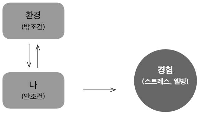 구성주의는 우리의 경험이 구성되는 것이라고 본다. 즉, 구성주의는 우리가 살면서 경험하는 것이 일방적으로 외부에서 주어지는 것이 아니라, 내가 관여해서 만드는 것으로 본다. 그림이라는 밖조건은 그를 해석하는 나의 안조건에 의해 해석되어 경험을 구성해 낸다. 스트레스 혹은 웰빙이라는 경험은 내 안의 특성이 관여해서 구성하는 것이다.