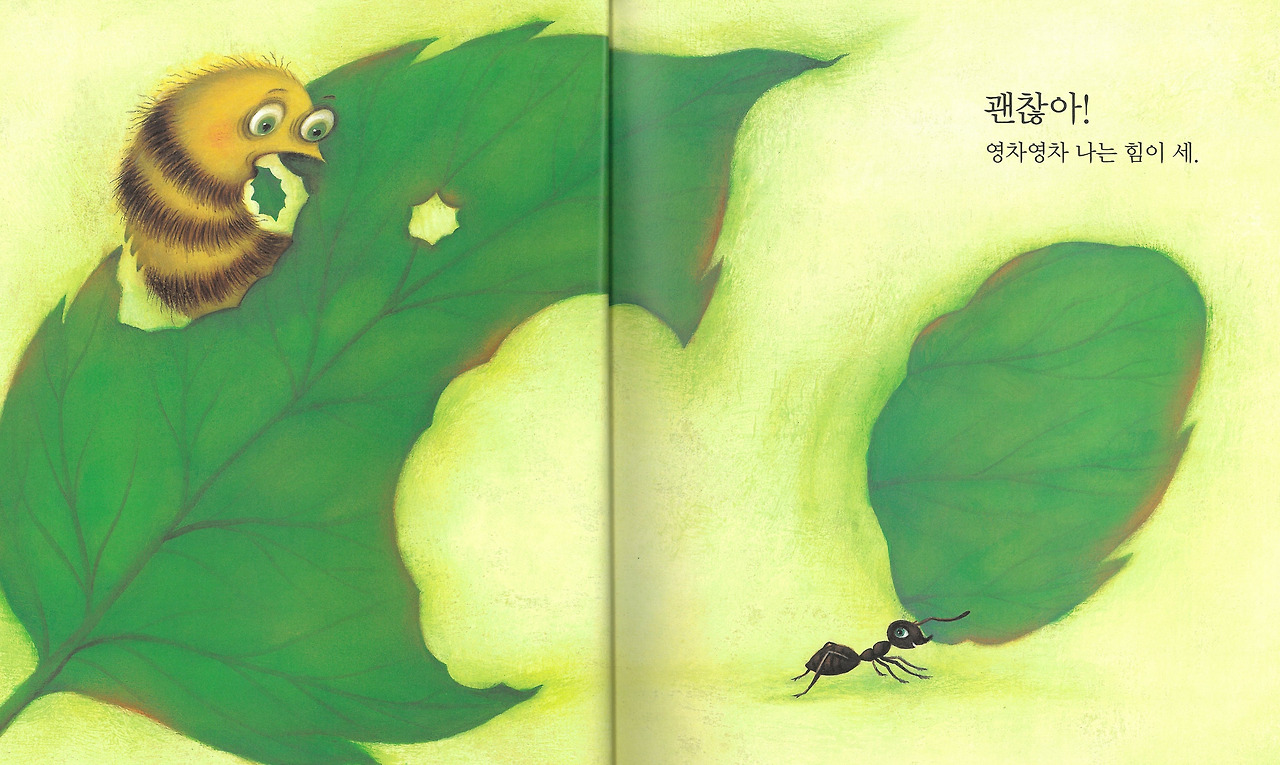 성이는 개미가 나뭇잎을 가지고 가는 그림을 자꾸자꾸