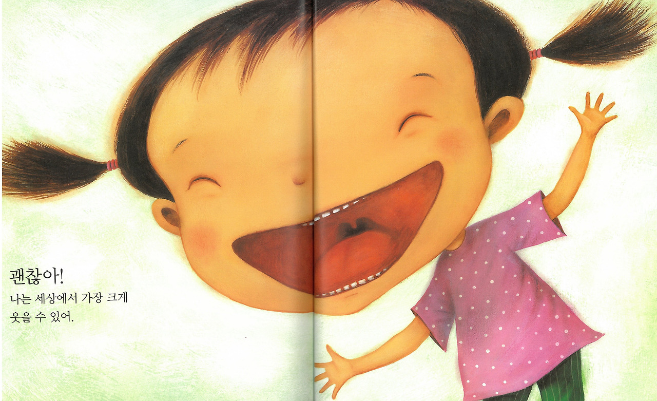성이가 괜찮아 대신 미안해를 넣어서 계속 읽으니까 나는 "푸하하!" 박수를 치며 웃었다.