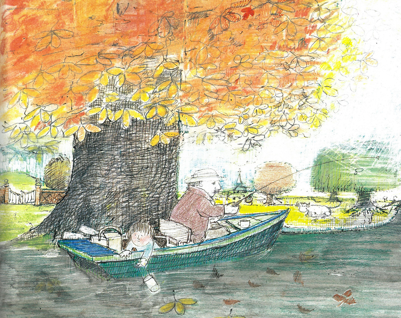 가을, 낚시를 하러 강으로 간 에밀리는