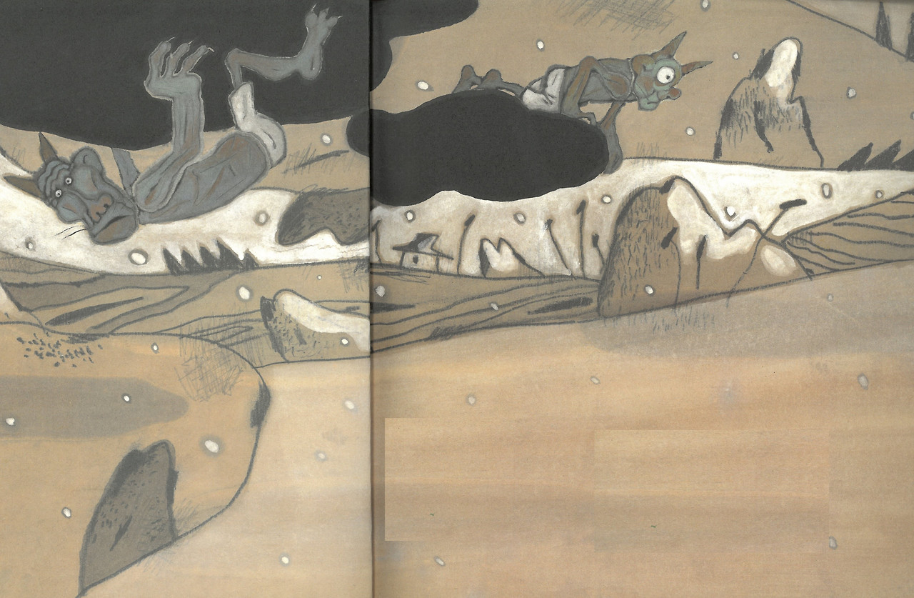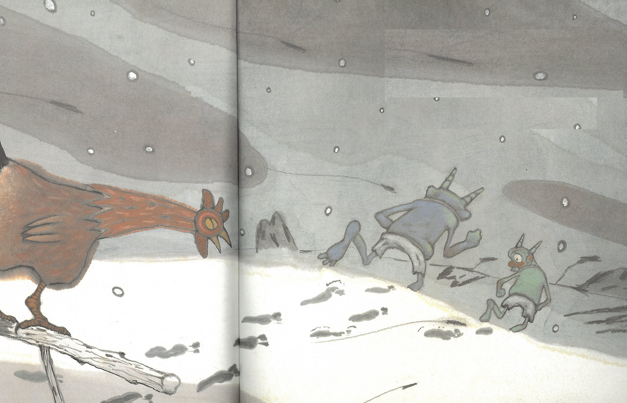 키다리와 큰눈이는 체를 집어던지고 허둥지둥 달아났어.