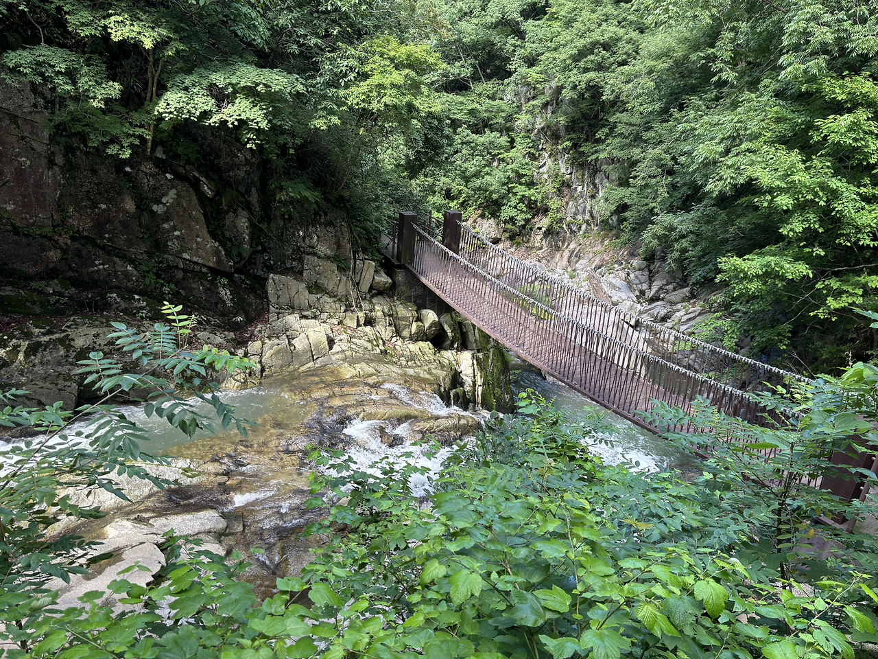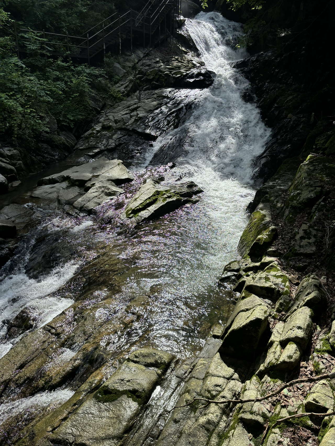 전라북도 남원을 왜 갈까, 가장 많이 드는 이유가 지리산을 둘러보기 위함이다. 더스위트호텔에서 가까운 지리사 초입으로 구룡폭포를 찾아갔다. 굽이치는 산길을 오르다 정령치를 목표로 가던 길을 멈추고 좌측으로 꺽어 구룡폭포로 향했다. 천룡암을 통과하여 데크길을 따라 내려와 구룡폭포에 미쳤다. 폭포의 물길은 상부에서 한번 크게 굽이쳐 다시 내렸다. 그 광경을 폰으로 1분 가량 비디오로 담으며 그 청량한 물소리를 담았다. 쏴 쏴~, 묵어둔 잡생각을 떨치게하는 자연의 힘이 나를 이시각 비우게 한다.