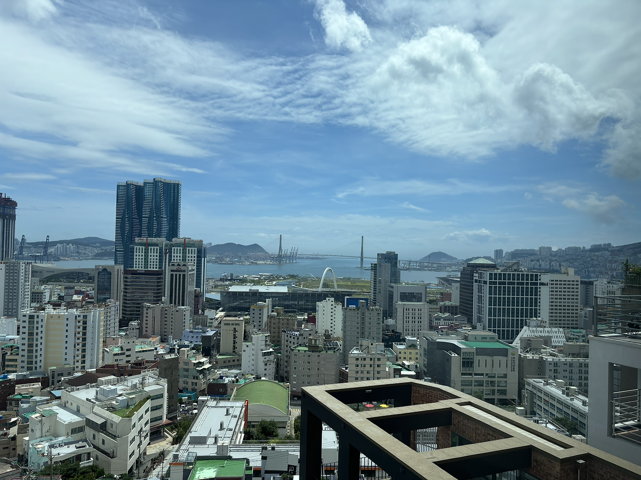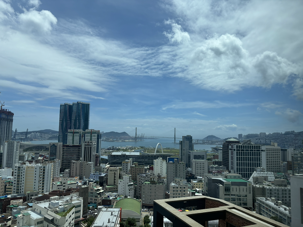 부산 초량 108 모노레일 위쪽에 위치한 이탈리안식당 “명란브랜드연구소”를 다녀왔다. 롤링피자, 오일파스타, 뇨끼, 샐러드, 이바구오차까지 해서 3인이 인당 14,250원이라는 가성비와 탁트인 전망이 주어졌다. 하늘에 넓게 펼쳐진 구름, 북항의 친수공간에 놓인 잔디밭, 그너머 부산항대교를 지긋하게 바라보며 멍때림 할 수 있는 여유를 가졌다.