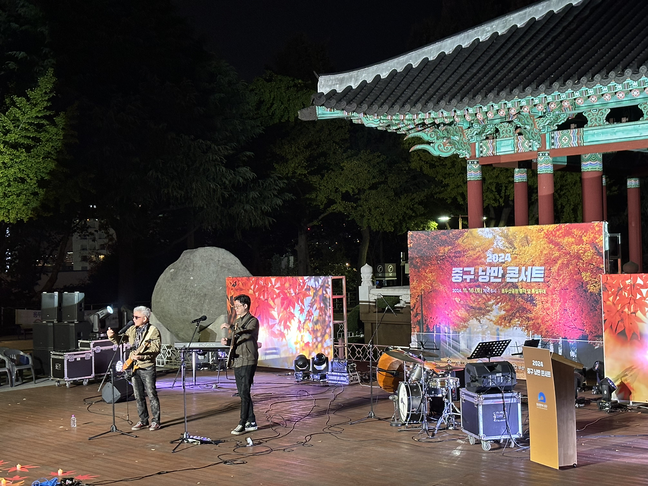 부산 중구청에서 지난 11월 16일 낭만콘서트를 용두산공원 종각 뒤편에서 개최했다. 강화도에서 15년전 부슬비가 내리는 날, 전등사에서 마주했던 산시음악회가 오버랩되었다. 종각의 문양과 따뜻한 조명, 탁트인 공간의 여유는 김장수(높은음자리), 위나밴드, 무루인중창단, 동물원의 노래로 가을 끝자락의 낭만을 선사해 주었다.