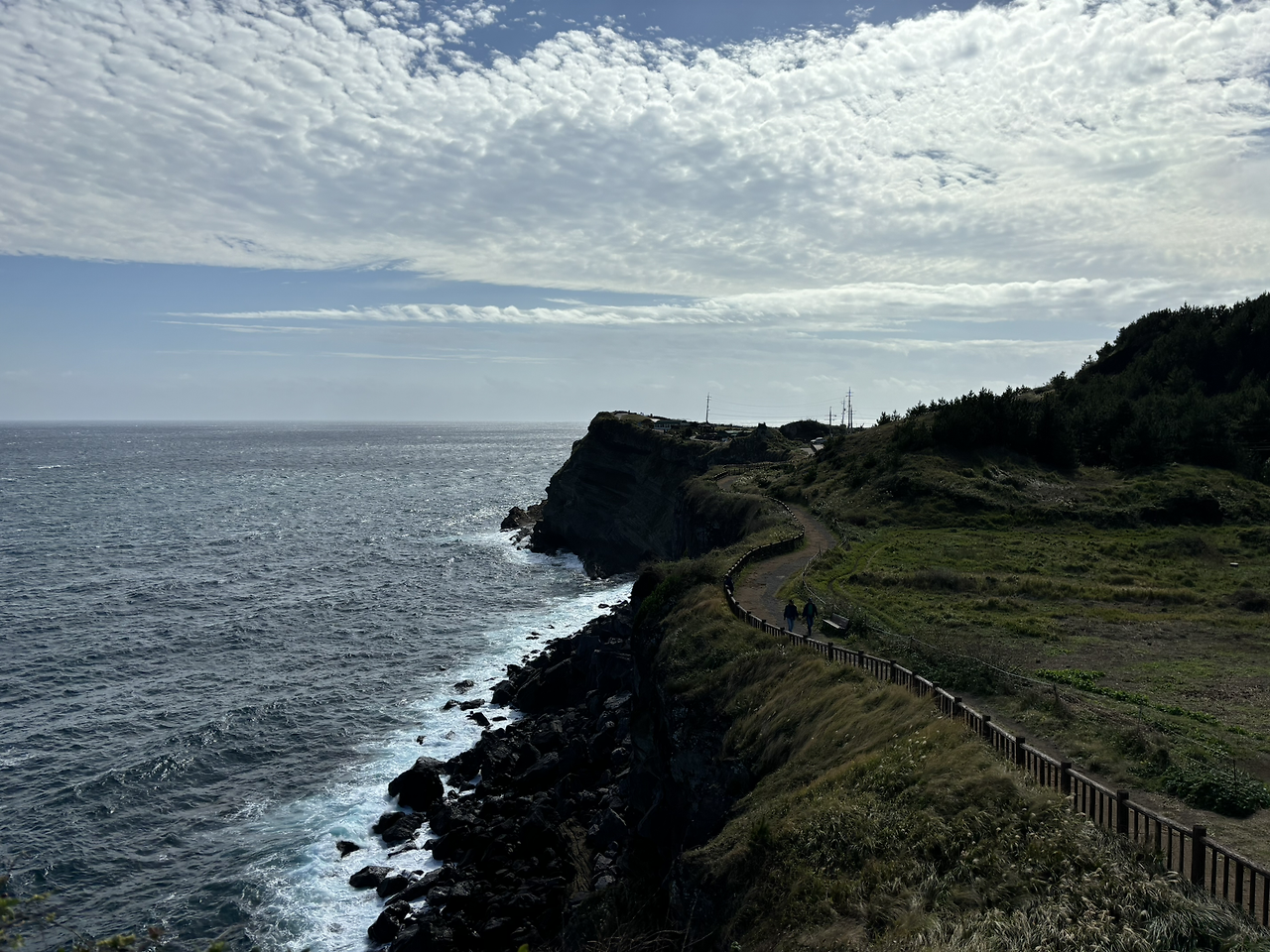 제주 송악산 둘레길을 들어서면 바다가 내가 선 지척까지 다가와 있는 지점에 닿는다. 거기서 형제 섬을 바라보고 끝자락에 이르면 절벽의 경치에 놀라게 된다. 방목하여 키우느 말들까지 트레킹하는 이들의 걸음은 여유롭고 탁트인 바다전망에 가슴이 열린다.