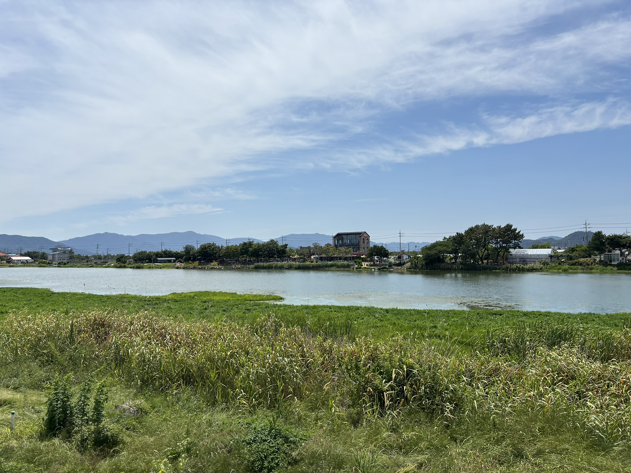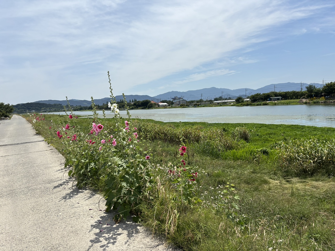 중사도는 김해 신어천과 서낙동강이 합류하는 지점에서 홍수로 생겨난 모래톱이 쌓여 형성된 모래섬이다. 식만동에서 연결된 중사교로 차량 이동이 가능하다. 타원형의 둑길을 돌면 40분 정도 소요된다. 꽃과 무, 파를 생산하는 농업의 현장을 볼 수 있고 둑 아래로 갈대와 오리들, 해자처럼 공간을 차지하는 강물이 멋진 풍광을 만들어낸다.