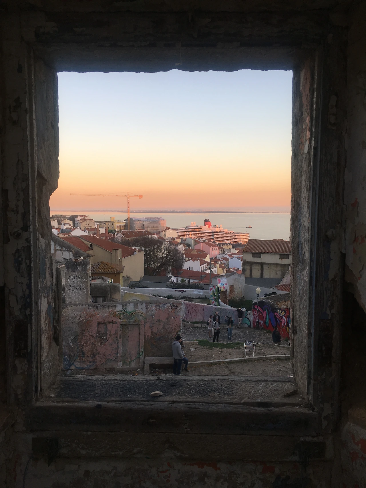 또 Salima와 나를 리스본 골목 이곳저곳 데리고 다니며 자신이 워킹투어로 봐왔던 곳들을 보여주었다. 유명한 관광지는 아니지만 경치 좋고 하늘과 햇살이 예쁜 곳, 옛날에 마약소굴이었을 것만 같은 미로처럼 생긴 폐허 공간, 벽을 따라가다가 어느 집 문을 노크하면 누군가 문을 열고 노래를 불러주는 곳 등. 우리는 비싼 입장료를 내고 성에 들어가기보다 주변 골목을 돌아다니며 그 순간을 즐겼다. 신이 나서 워킹투어에서 들었던 이야기를 우리에게 말해주는 Carlos와 비로소 진짜 여행을 하는 기분이 든 나와 Salima. 바다 앞 의자에 셋이 나란히 걸터앉아 햇빛을 받으며 버스킹 노래를 들었을 때는 너무 평화롭고 시간이 멈춘 것만 같았다.
