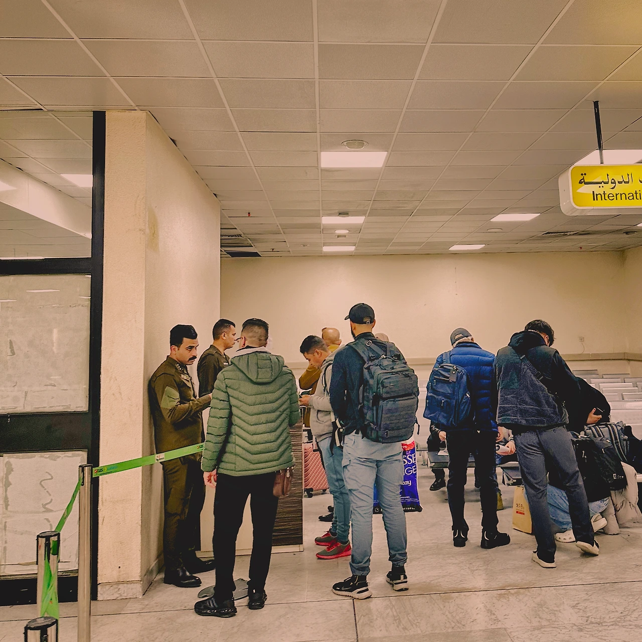 우리가 공항 입국심사장에서 비자를 기다리는 동안 많은 사람들이 우리가 있는 곳으로 모여들었다. 처음에는 우리 일행만 있었던 곳이 얼마 안 가 이라크에게 외국인인 사람들로 가득 찼다. 중국인들과 미국인지 유럽인지 모를 사람들, 그리고 국적 모를 아랍계 외국인들이 서로 펜을 주고받으며 정신없이 서성였다. 나는 그 사이에서 일행과 함께 짐을 지키며 두리번거리고 있었다.