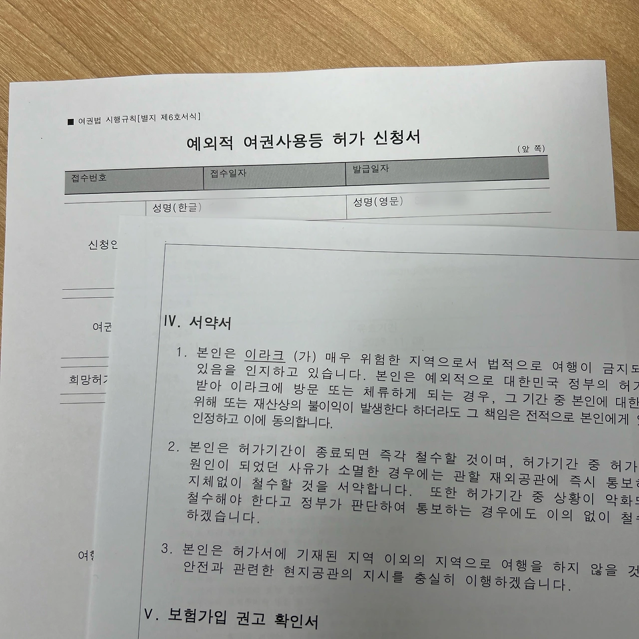 바그다드 공항에 도착하고 핸드폰의 비행기모드를 풀자마자 여러 개의 문자가 연이어 소리를 울리며 도착했다. 요란한 경고였다. 외교부라는 머리말과 금지라는 단어를 사용한 이 문자들은 이미 알고 있는 내용을 가히 충격적으로 전달해 줬다. 우리는 이라크에 오기 전에 외교부에 이라크 입국 허가를 받아야 했다. 그래서 예외적 여권사용을 위해 신청서를 작성하고 관련된 서약서에 서명도 했다. 회사에서 관련 내용을 교육했을 때는 가볍게 넘겼었는데, 막상 문자가 오니 거품이 가득 꼈던 이라크에 대한 기대가 그 포말을 모두 벗고 불안이라는 원래의 모습을 되찾았다.