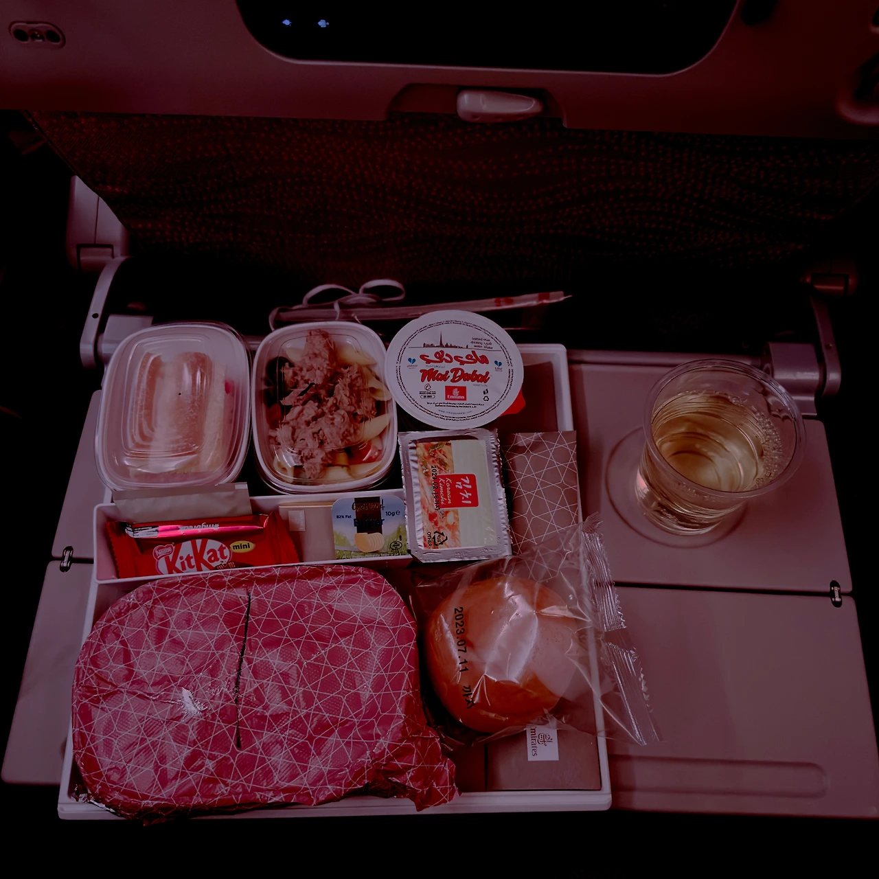기내식은 여행의 시작을 실감시켜주곤 했지만 이번만큼은 달랐다. 이제 이것을 시작으로 한식을 그리워할 것이란 걸 적나라하게 알려줬다. 외식의 시작이자 한식과의 이별을 고하는 첫 번째 식사였다. 도착지가 어디였는지보다 기내식을 먹을 수 있다는 사실에 더 기뻐했던 학생이 자라나 이제 기내식을 보며 씁쓸하게 미소를 짓게 됐다.